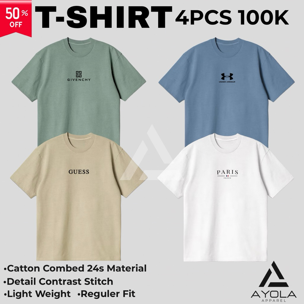 Paket 4Pcs 100RibuanKaos Pria Distro Sablon Lengan Pendek Catton Combed 24s Size M Jumbo XXL