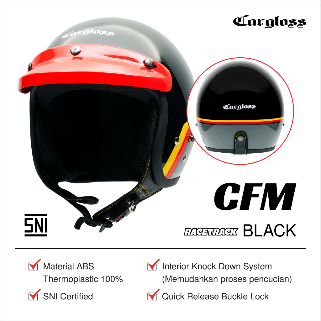 Cargloss CFM Retro Helm Half Face - Race Track Black