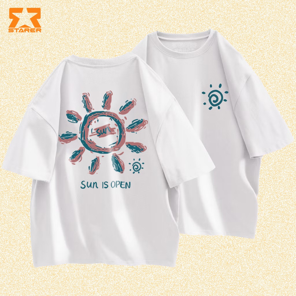 STARER Kaos Oversize Pria Wanita Distro Lengan Pendek Basic Polos T Shirt Unisex Baju Sablon Sun 0016