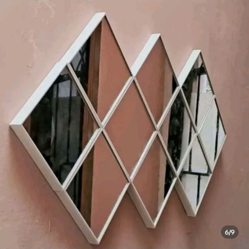 Dekorasi Cermin Kotak Tempel Isi 10Pcs Ukuran 16X16 Cm Full Bingkai