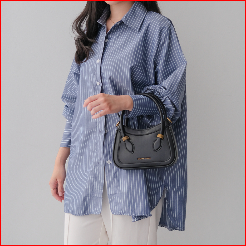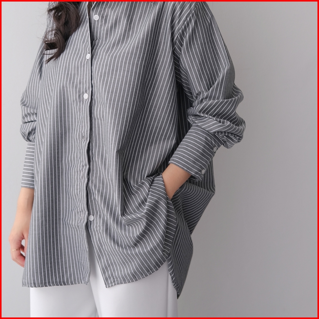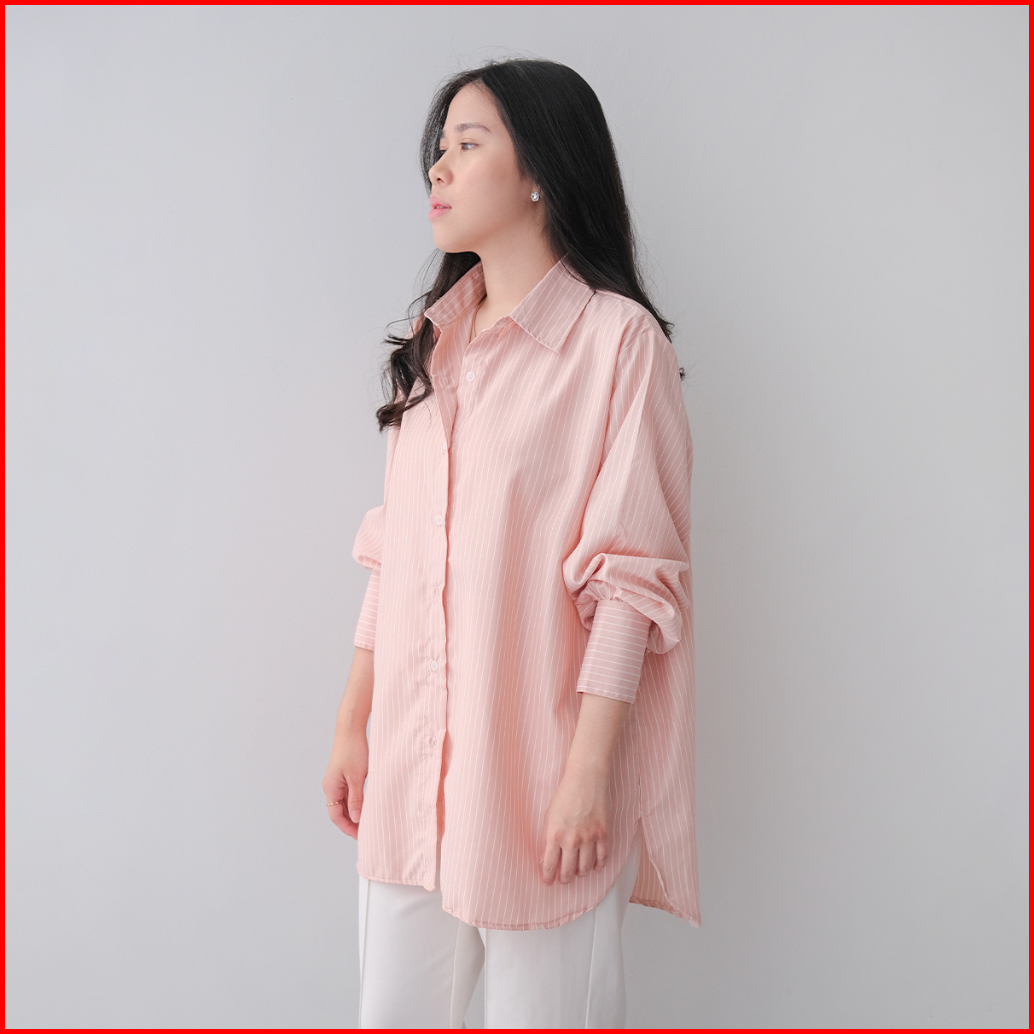 Tiffany Stripes Editions Kemeja Basic Salur Wanita Lengan Panjang Kemeja Kerja Kantor Aesthetic