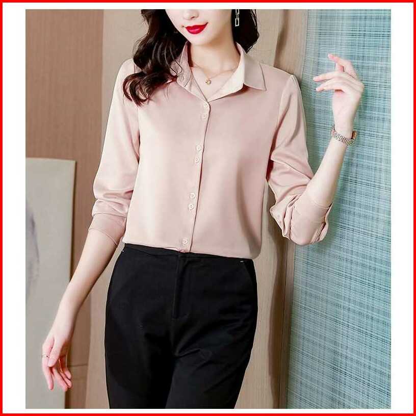 Calissa Fashion Kemeja Atasan Wanita Kantor Office Style Korea Lengan Panjang Model Miya
