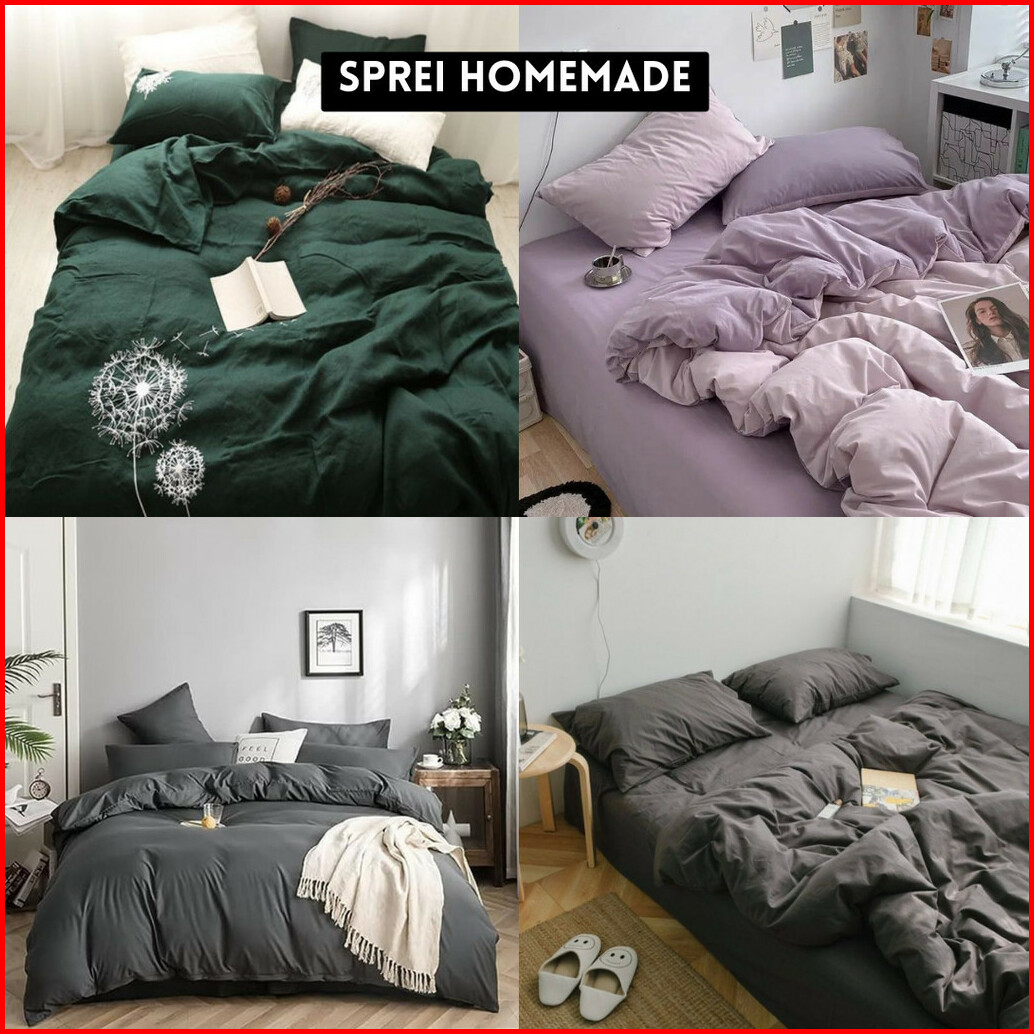 Sprei Homemade Polos Ukuran 90 120 160 180 X 200 Tinggi 20cm Sudut Karet Anti Geser Seprei Polos Aesthetic Free Sarung B