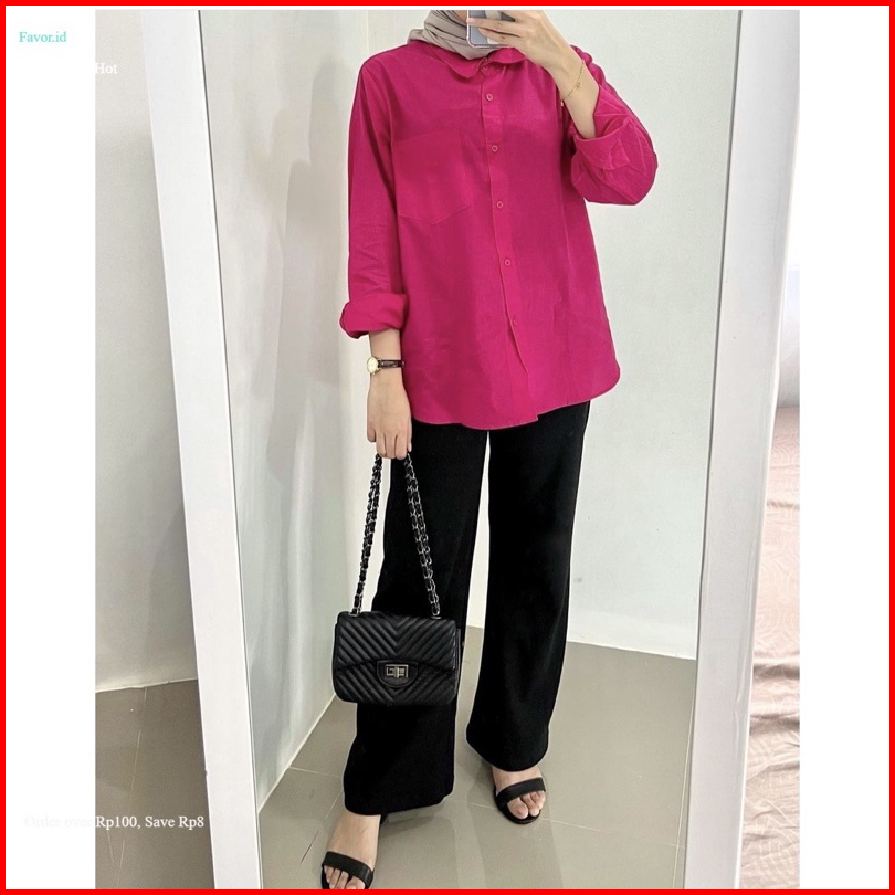 Zn2 Kemeja Rayon Polos Saku Kemeja Basic Wanita Kemeja Kerja Wanita