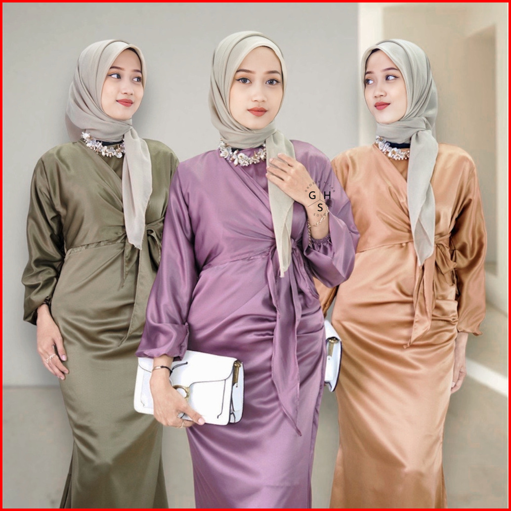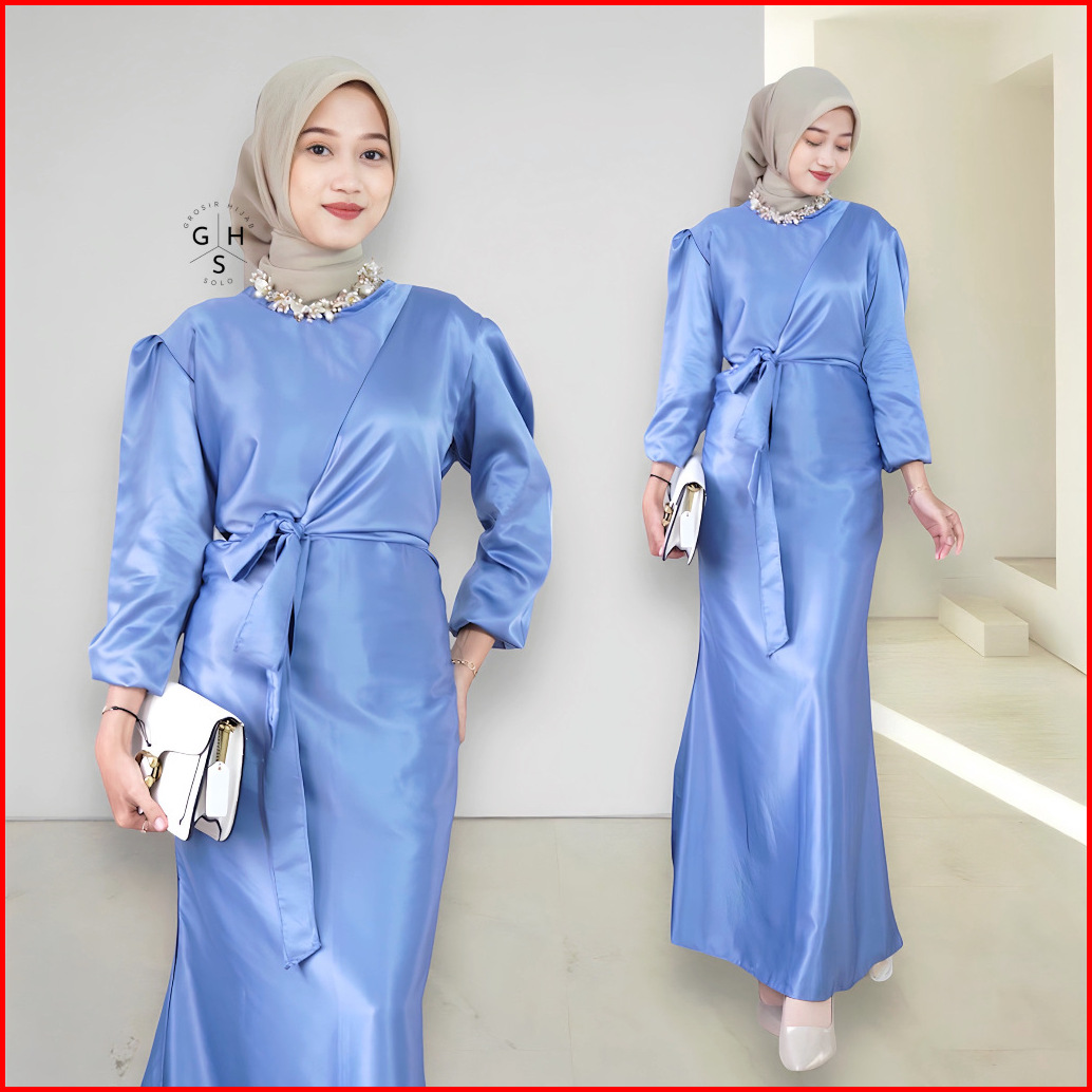 Dania Gaun Pesta Bridesmaid Kondangan Gamis Dress Wanita Press Body Satin Silk Premium Amd Grosirhijabsolo
