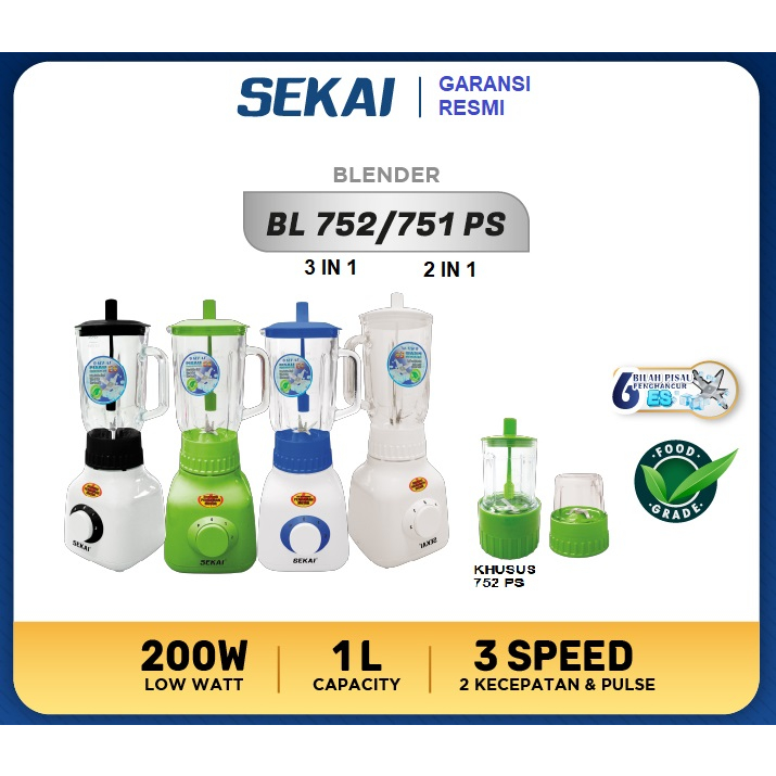[Mall] SEKAI Blender Pelumat Plastik BL 751 PS 2in1 / BL 752 PS 3in1 751PS 752PS