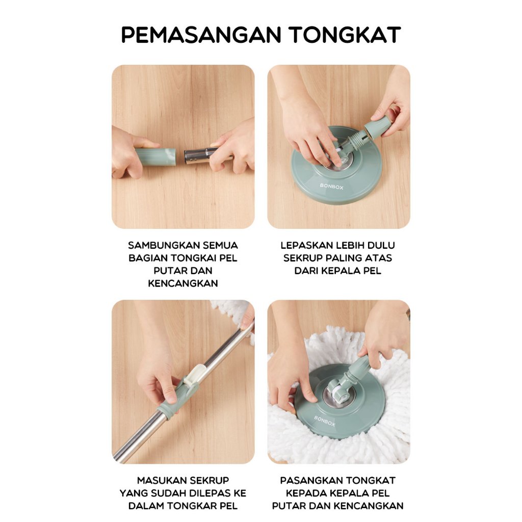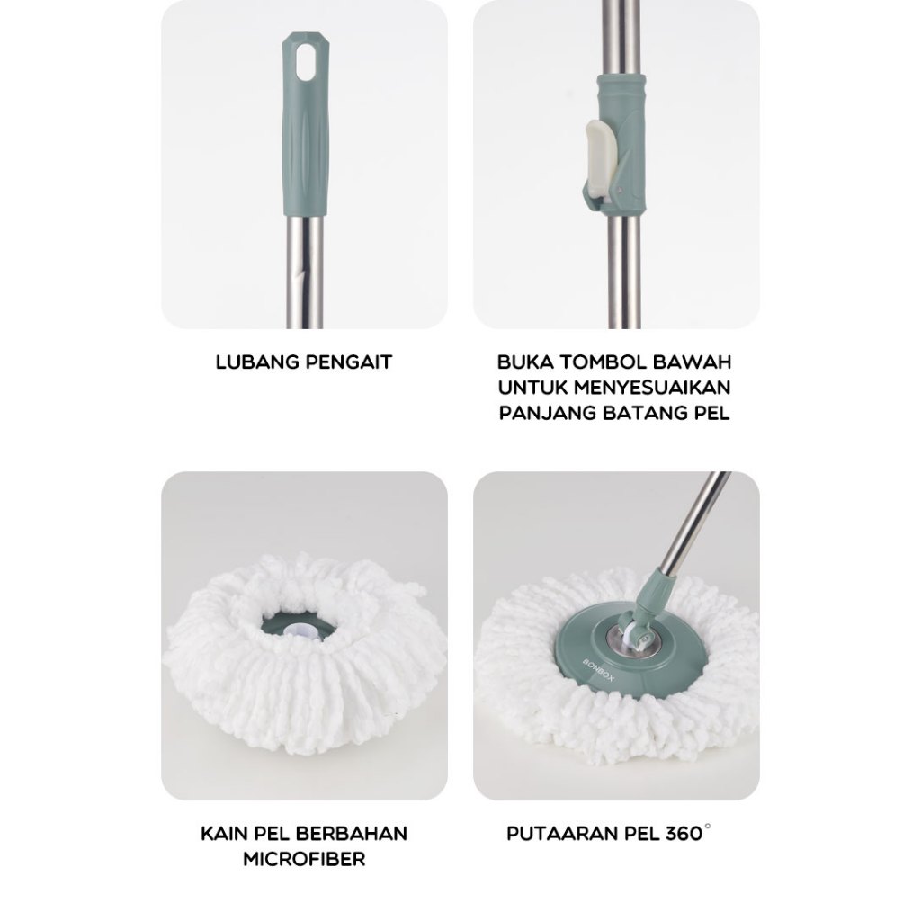 BONBOX Alat Pel Tongkat Pel + Kain Pel Set Mop Stick Set with Headmop Adjustable Dapat Digunakan