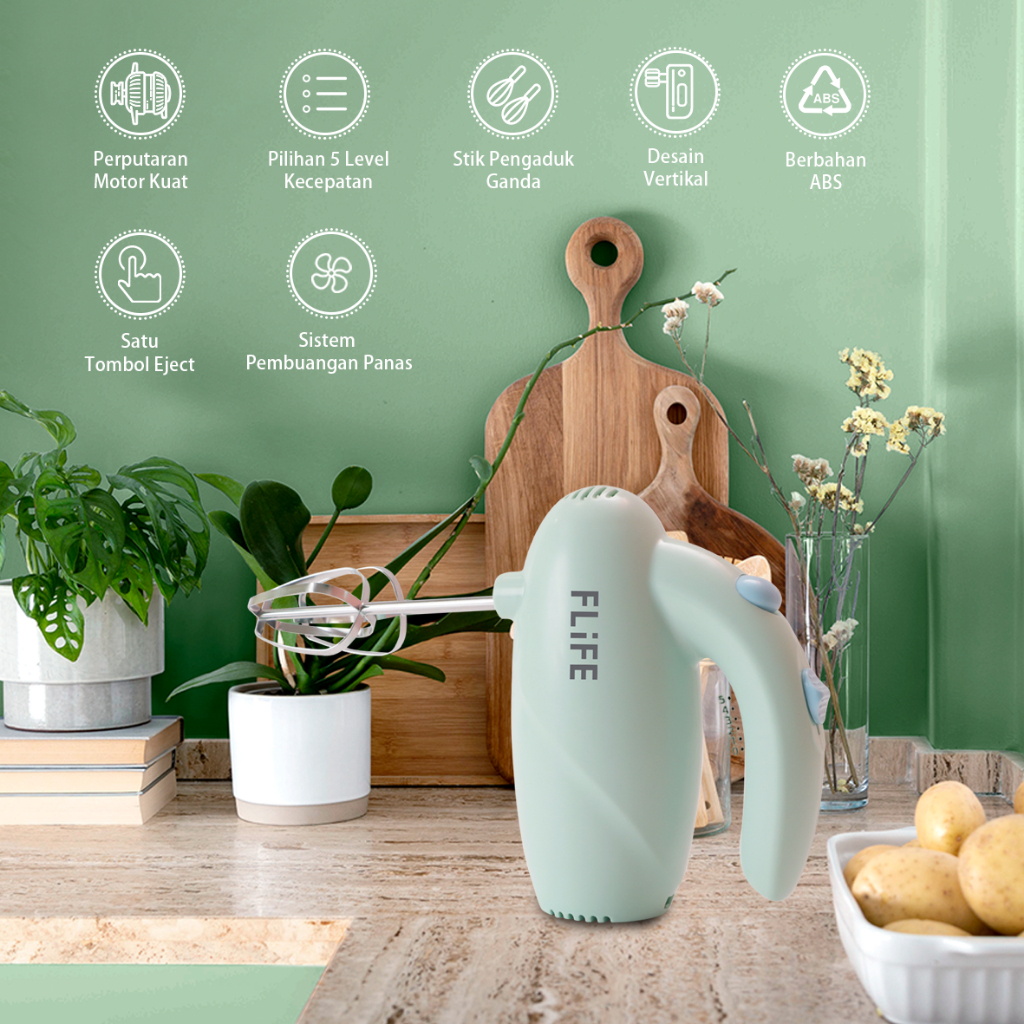 [Mall] FLIFE Hand Mixer - 5 Level Kecepatan - Double Beater - Perlindungan Pengatur Suhu - Model HM200G-CX
