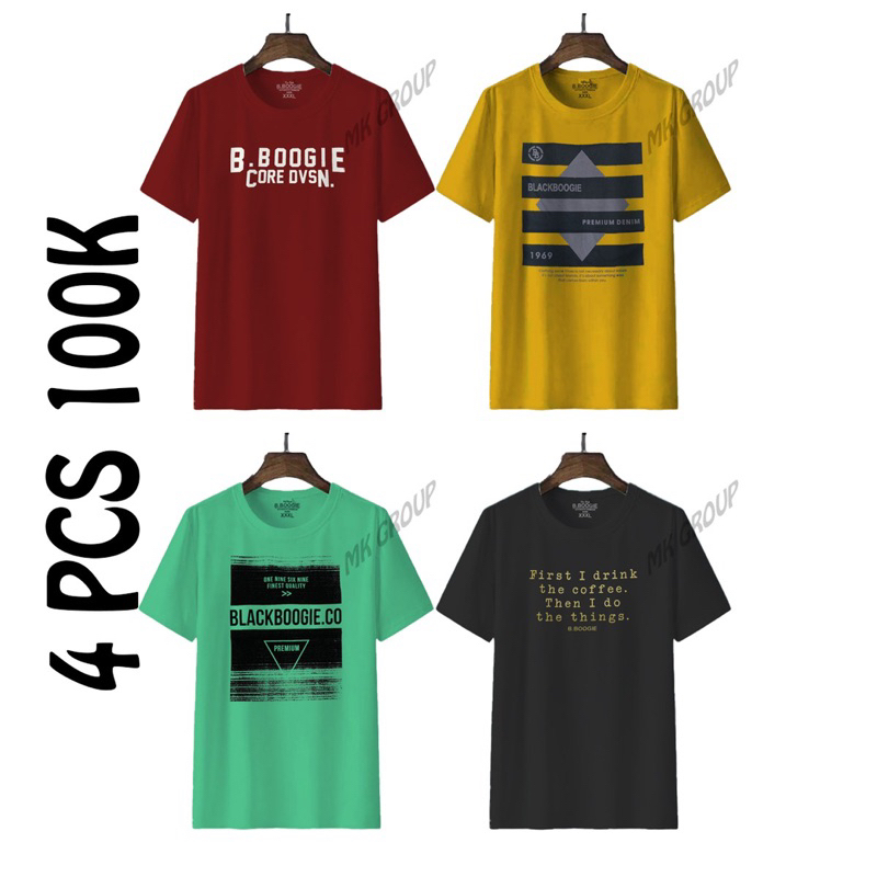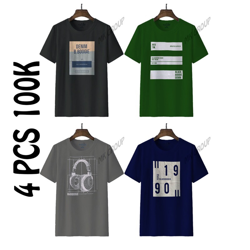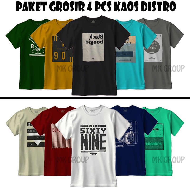 PAKET 4PCS 100RIBU KAOS DISTRO PRIA DAN WANITA BAHAN SEMI KATUN KAOS DISTRO T SHIRT REGULER POLOS GELAP KAOS T SHIRT K