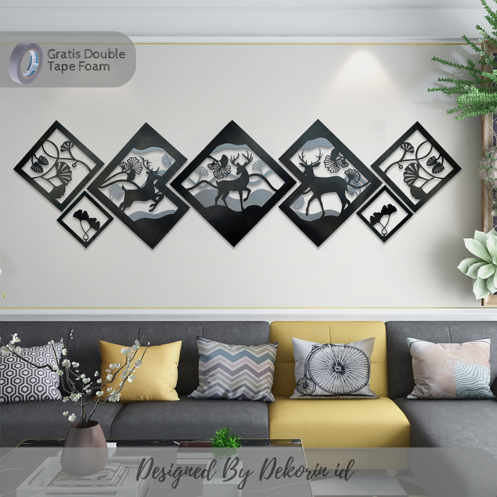 Hiasan Dinding Ruang Tamu Aesthetic Set Pajangan Kamar Mewah Wall Decor Kayu Motif Rusa Minimalis