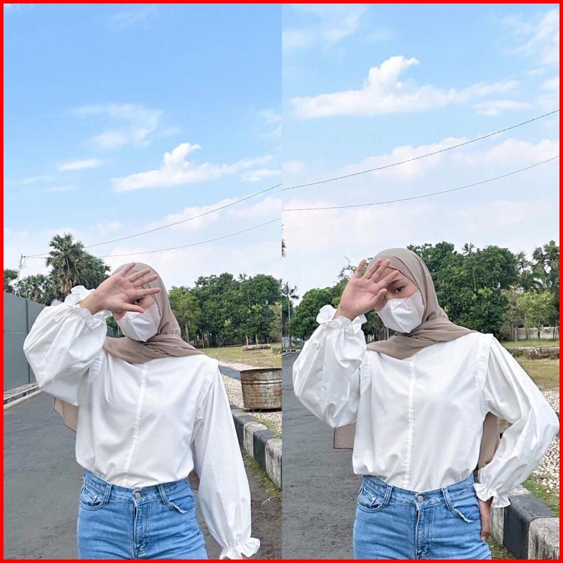 Moni Blouse Katun Poplin Atasan Lengan Balon Wanita Baju