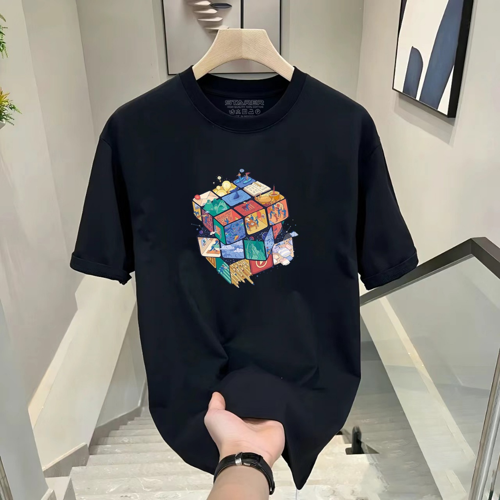 STARER Kaos T Shirt Unisex Pria Wanita Distro Lengan Pendek Basic Polos Baju Sablon Kubus Rubik 0098