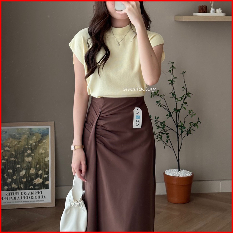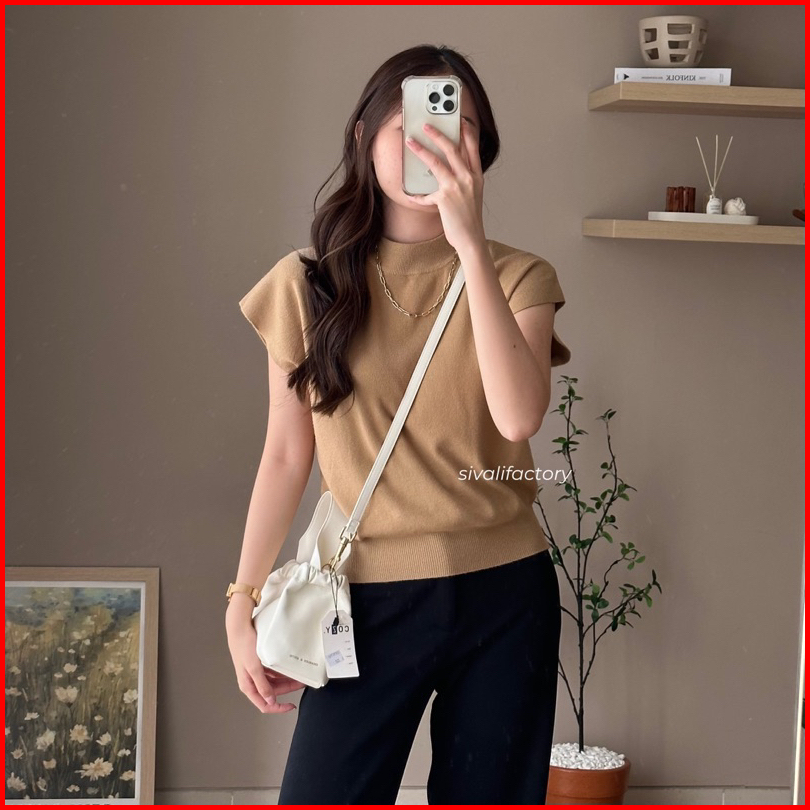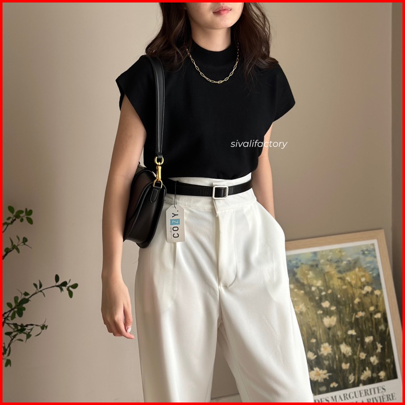 Sivali Eunji Knit Top - Baju Wanita Vest Turtleneck Rajut Tanpa Lengan Import Inner Hijab - Atasan Wanita