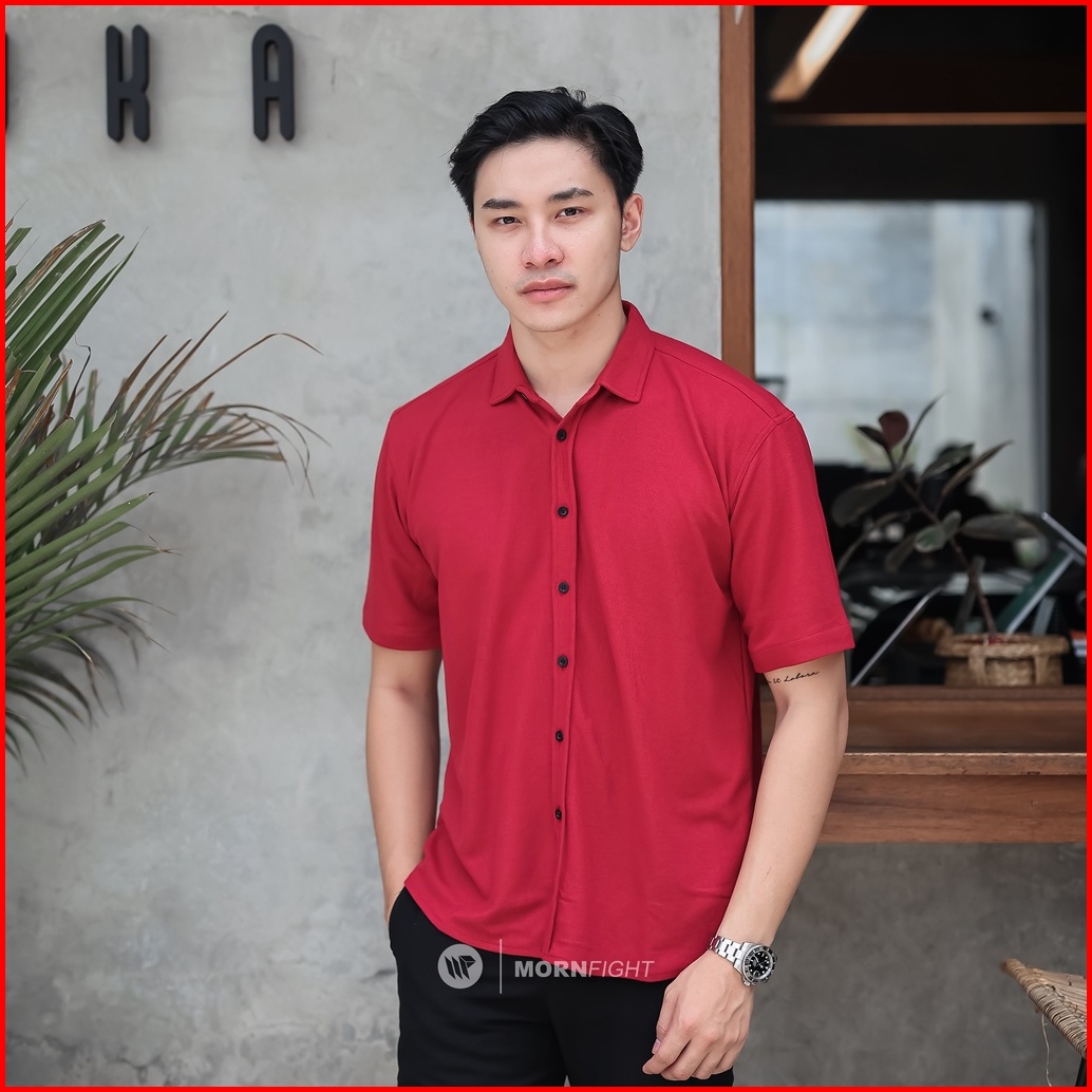 Mornfight - Kemeja Pique Pria Lengan Pendek Casual Bottle Green