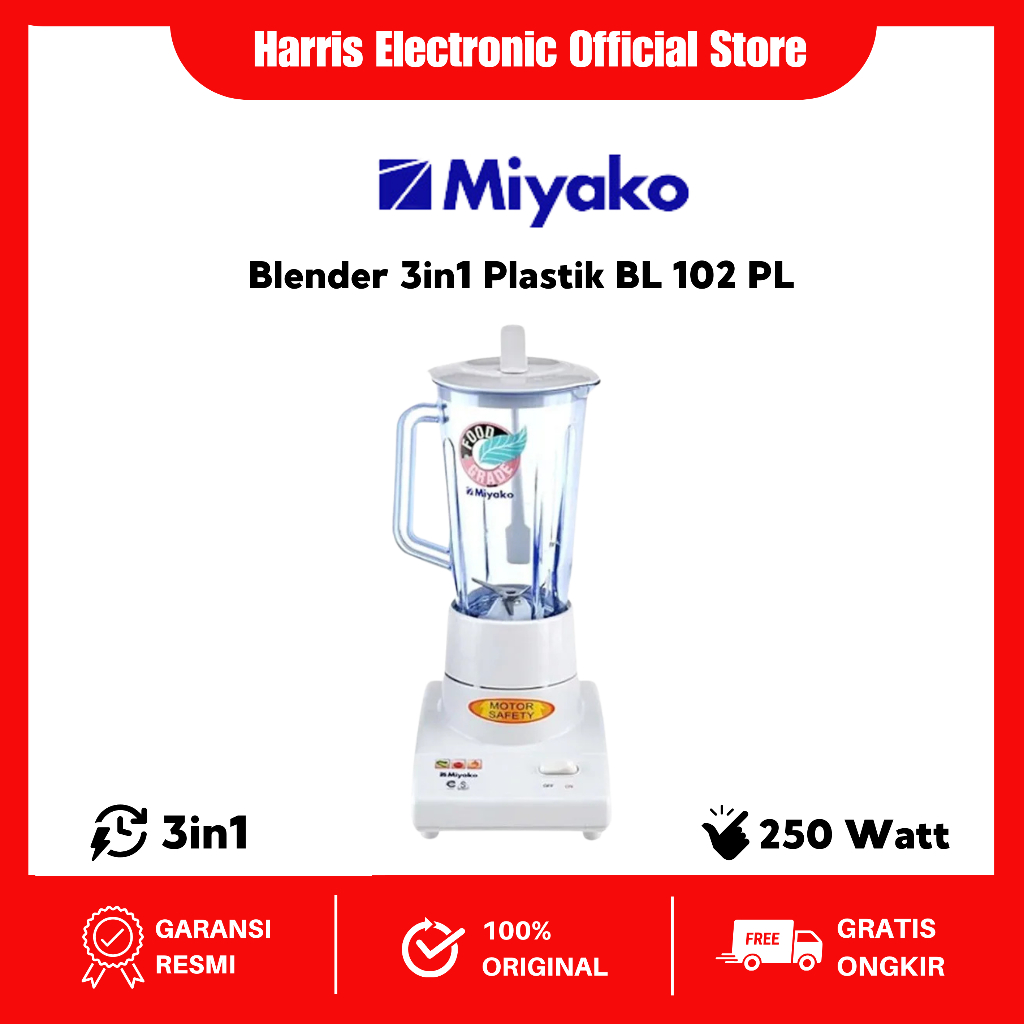 [Mall] Blender Miyako BL-102PL 3In1 / MIYAKO BL-102 PL Blender Plastik 1 Lt 3in1
