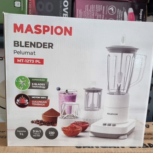 [Mall] MASPION Blender Pelumat Plastik with Wet Miller and Dry Miller 1 Liter MT-1273 PL 3 in 1 MT1273