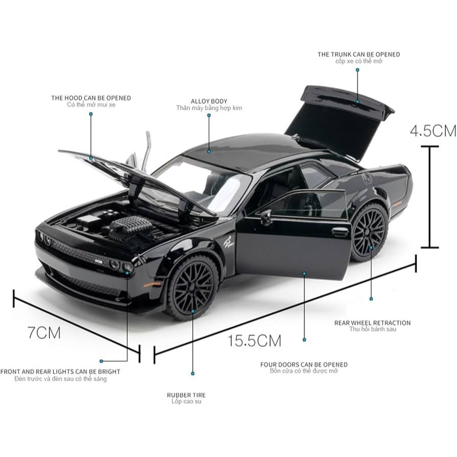 Diecast Dodge Challenger HELLCAT SRT Skala 1:32 Pajangan Hadiah Mainan Miniatur Mobil Sport Car Fnf