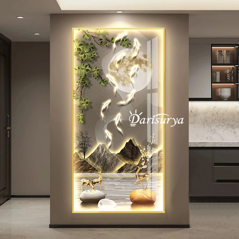 Lampu Dinding Ruang Tamu Modern Minimalis Rusa Emas Lukisan Krystal Porselin 5D Luxury Walldecor 10050Cm Led Cahaya Han