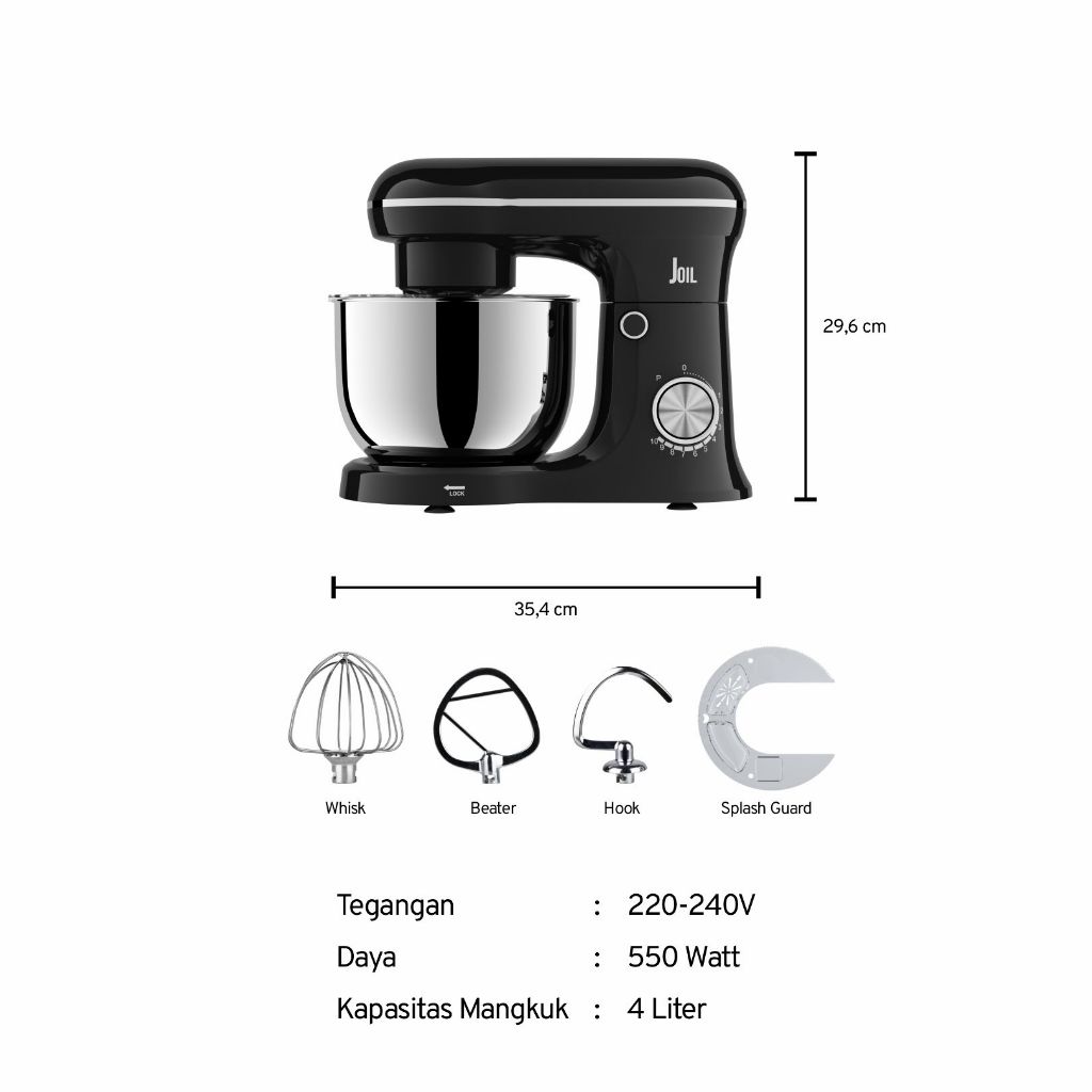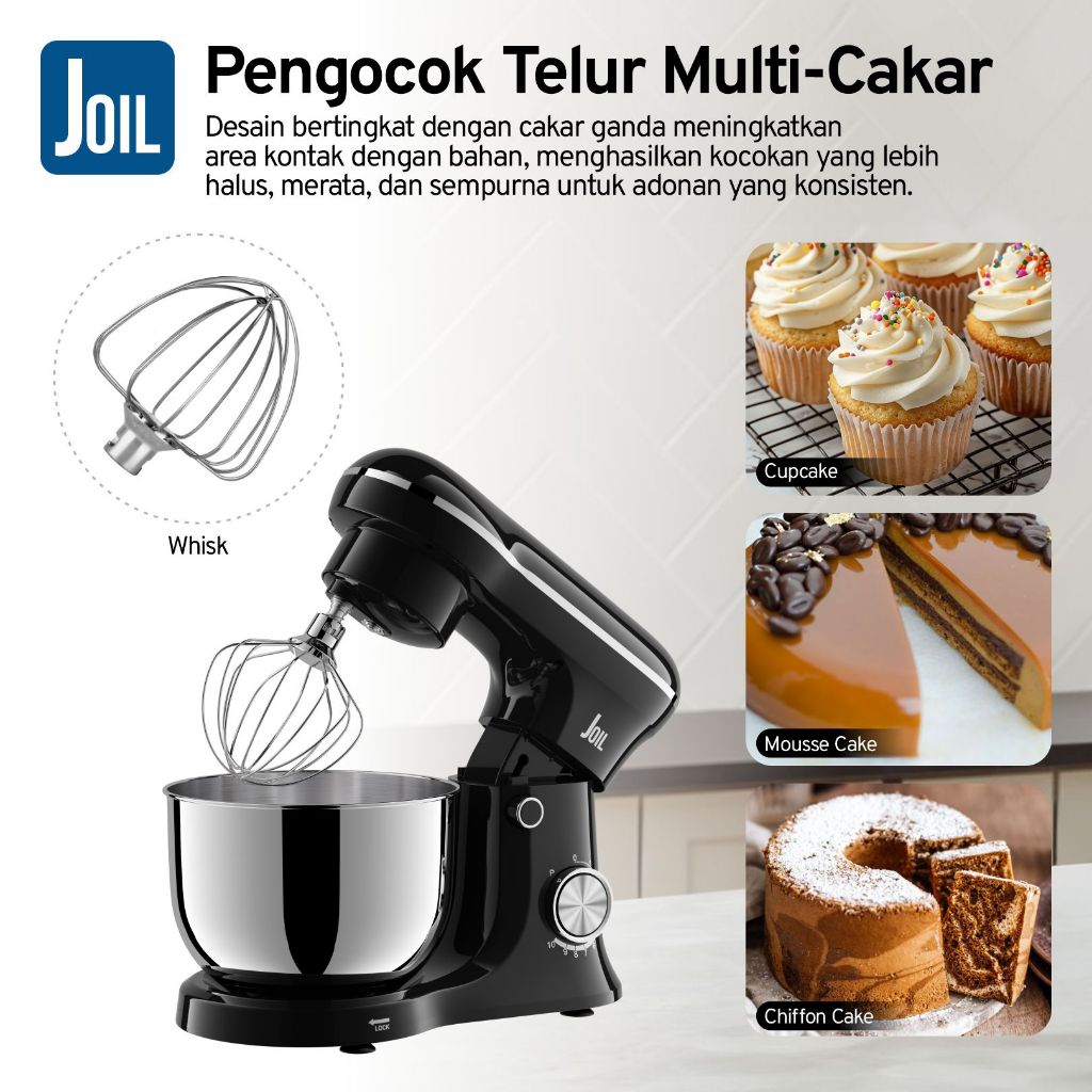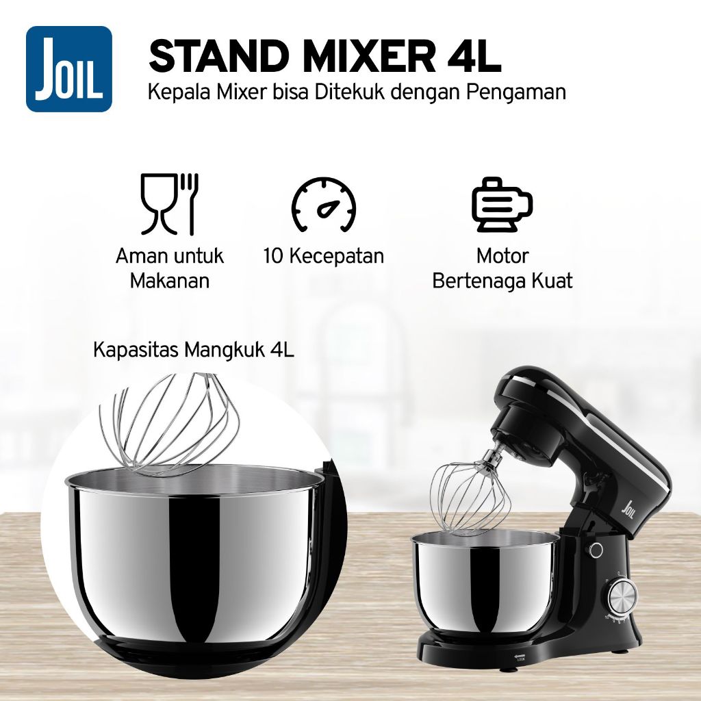 [Mall] Joil Stand Mixer 4L Pulse Mode Stainless Steel 3 Pengaduk M6