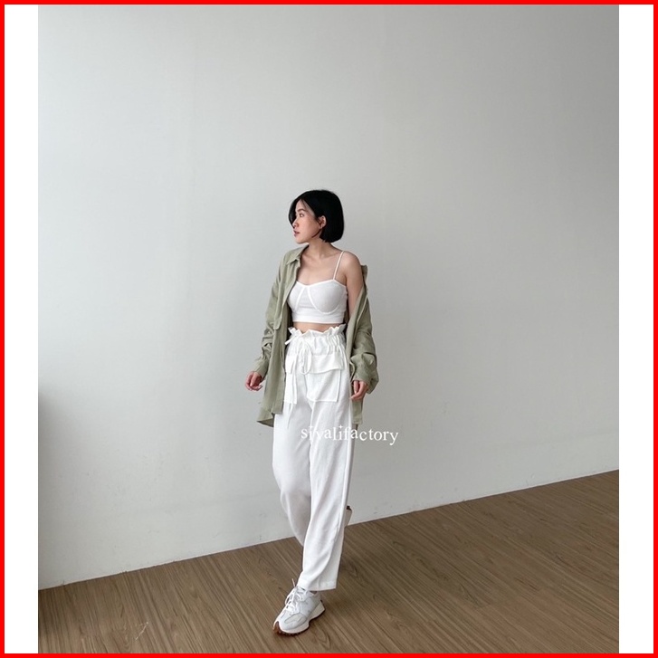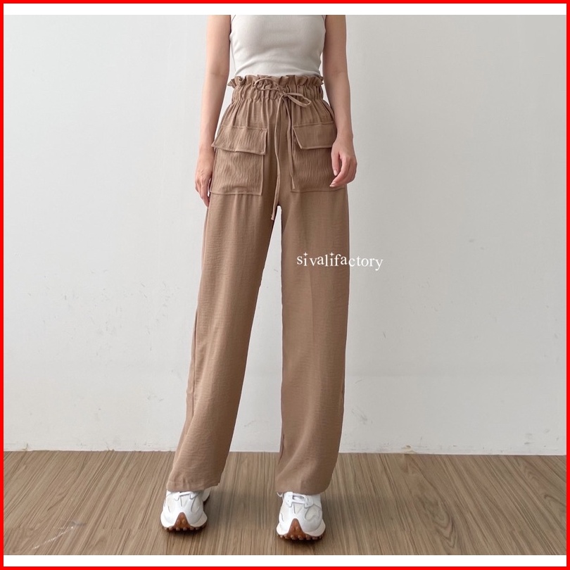 Sivali Hanna Pants - Celana Kulot Highwaist Crinkle Double Pocket - Celana Wanita - Cullote Pants