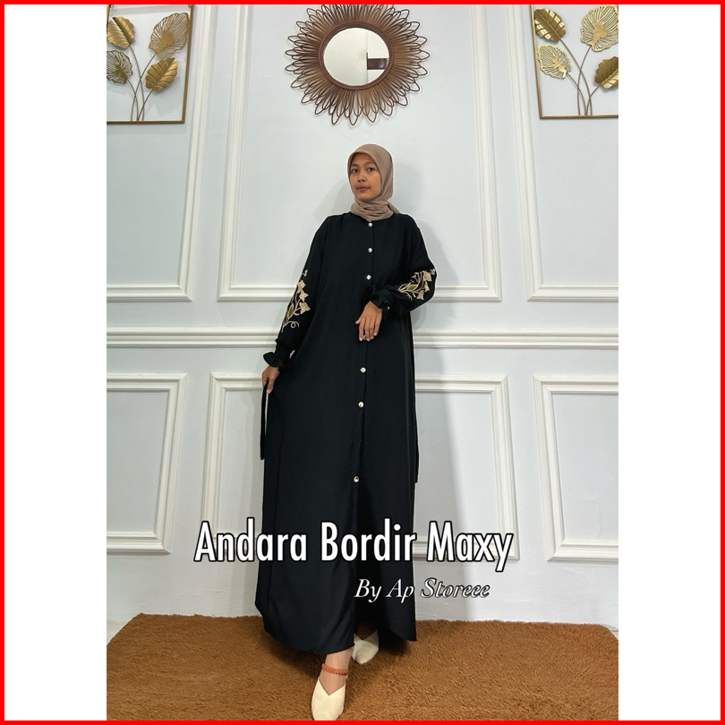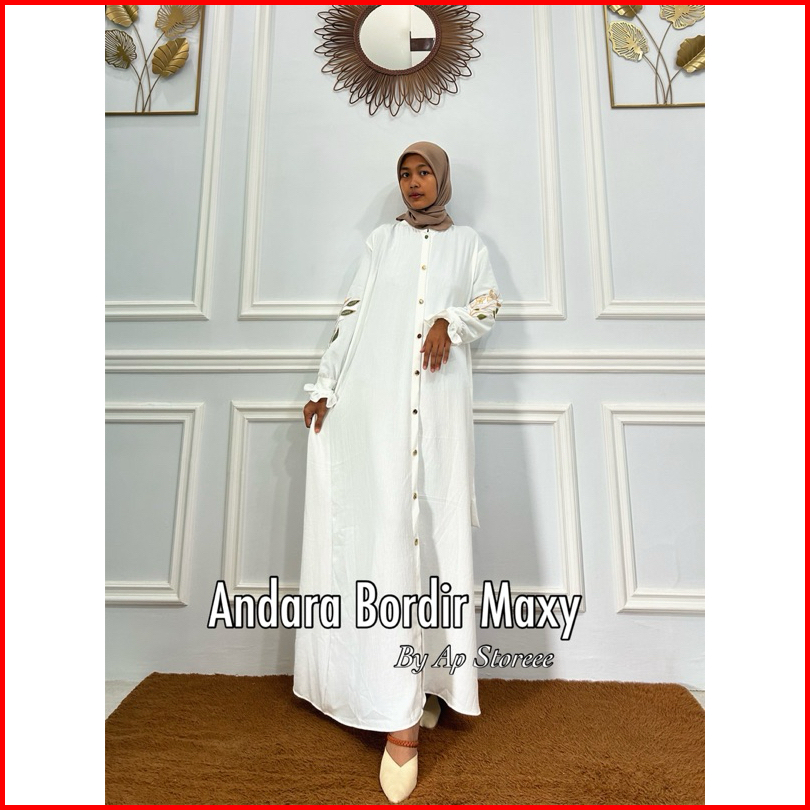 Gamis Bordir Khanza Ld 110 Ld 130 Jumbo Andara Santi Dress Maxy Cringkel Airflow