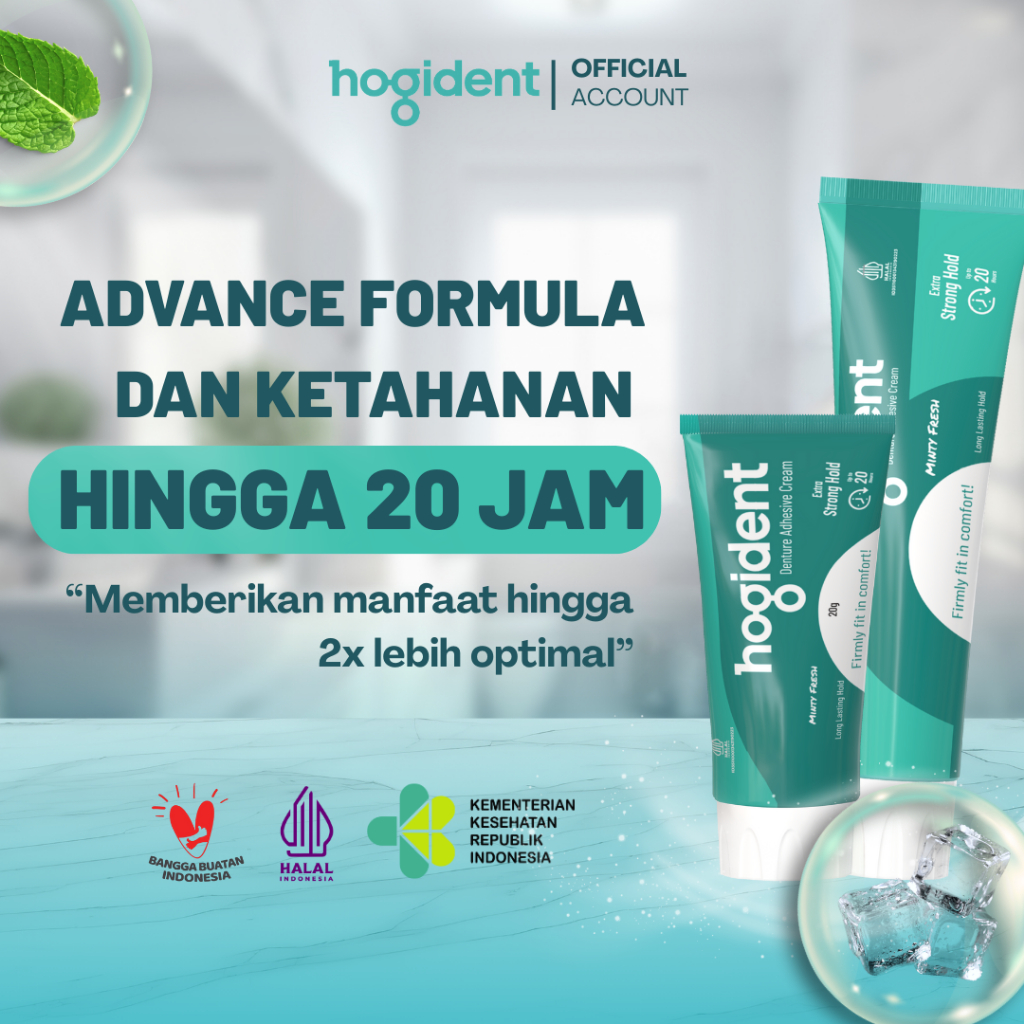 [SUPER HEMAT] Hogident Lem Perekat Gigi Palsu Tahan hingga 20 jam - 50 gram