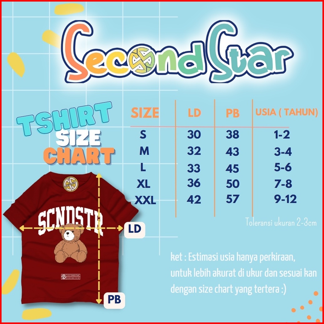 Secondstar Setelan Anak Laki-laki Perempuan Usia 1-10 Tahun Kaos Distro Dan Celana Pendek