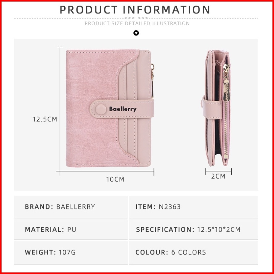 Dm10 Dompet Baellerry N2363 Dompet Wanita Lipat Kulit Pu Leather Premium