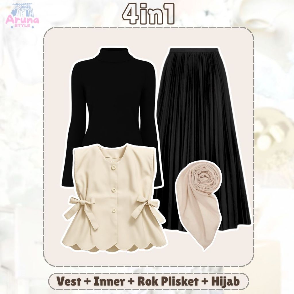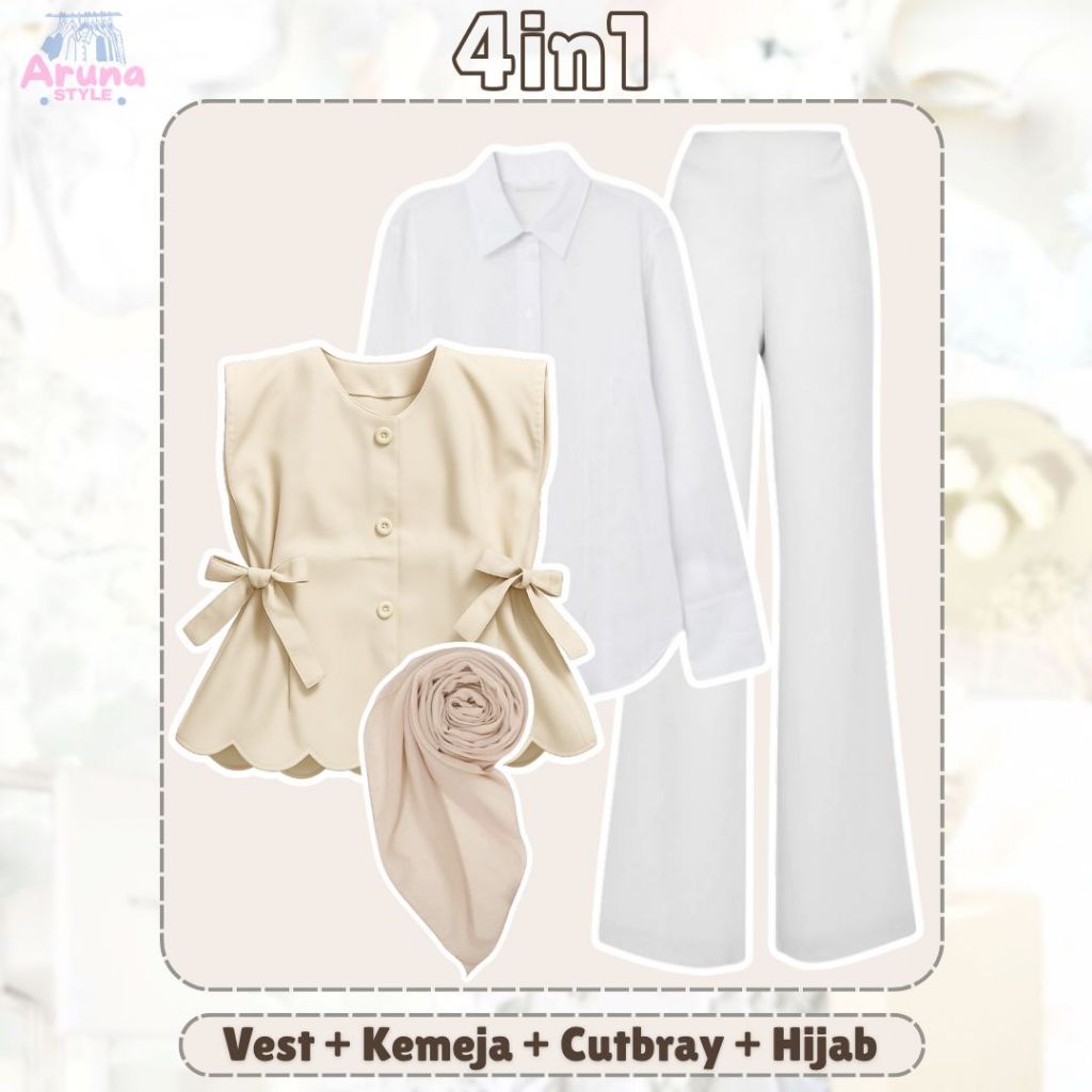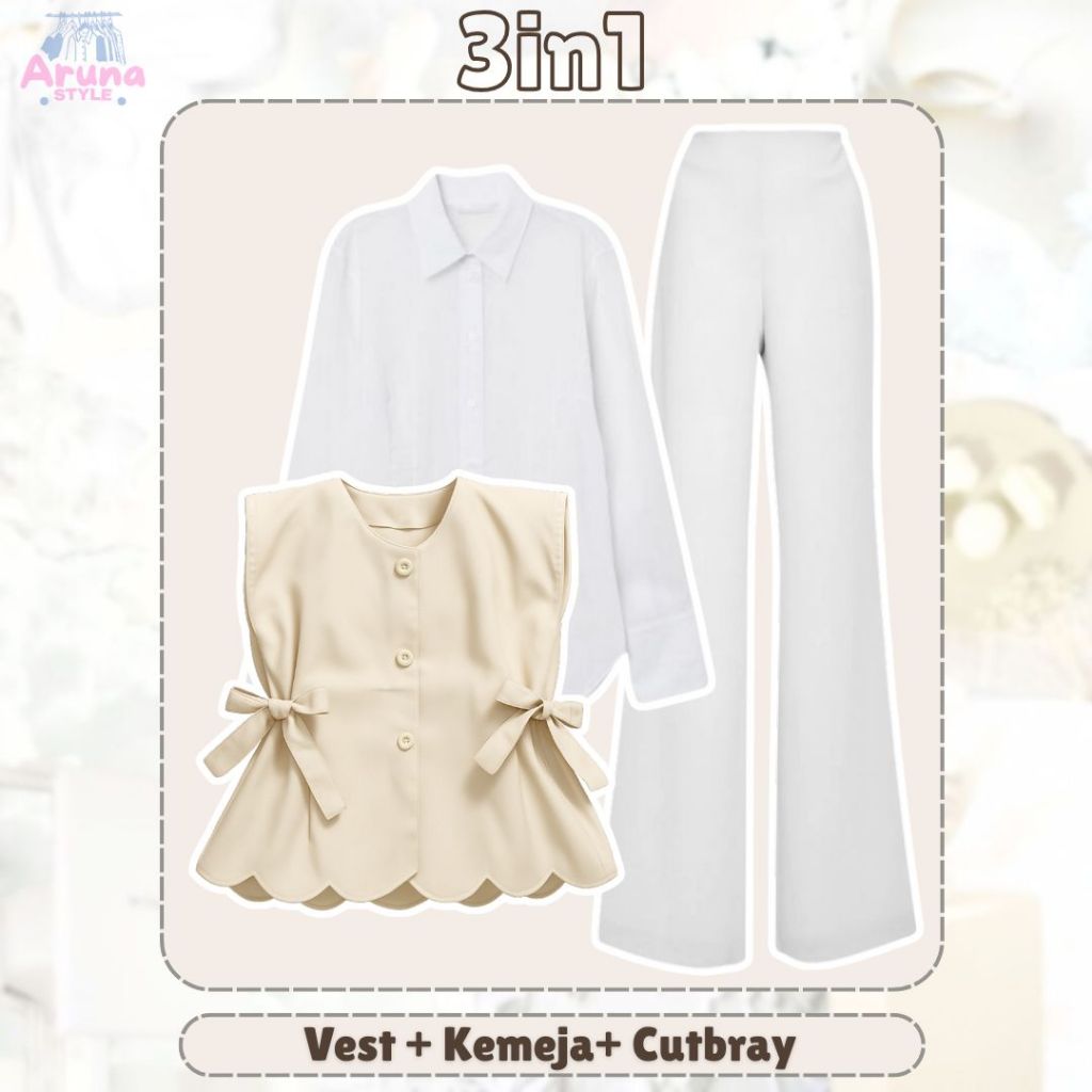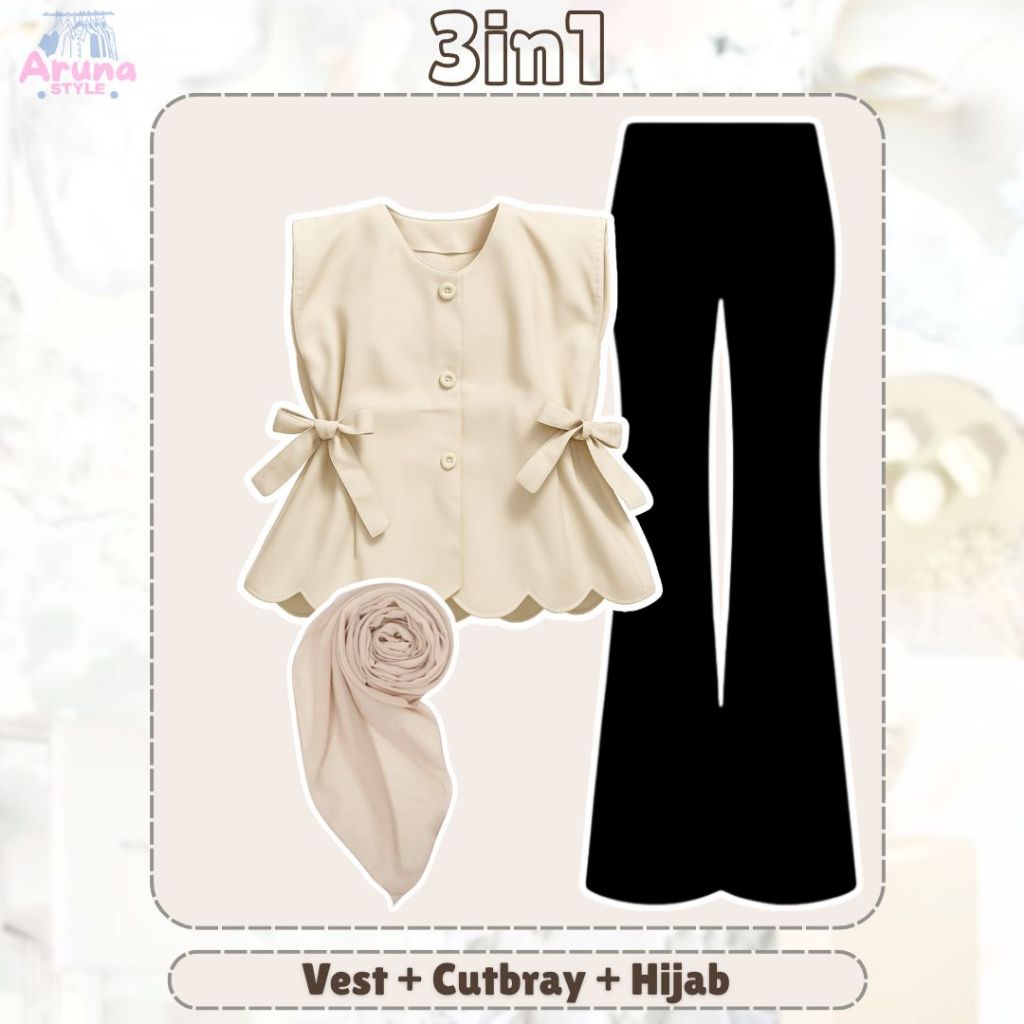 KOREAN STYLE SETELAN BAJU WANITA VEST CHERISH INNER CUTBRAY BELLA SQUARE TEKSTUR LEMBUT COCOK BUAT HANGOUT ATAU KULIAH