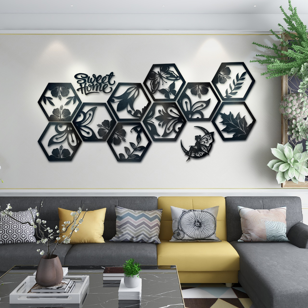 Hiasan Dinding Hexagonal Aesthetic Untuk Dekorasi Kamar Ruang Tamu Wall Decor Kayu Motif Bunga