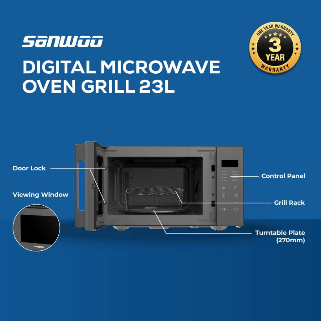 [Mall] Sanwoo Digital Microwave Oven Grill 23L Premium Digital Food Heater / Mesin Penghangat Makanan Listrik Multifungsi Oven dan Grill