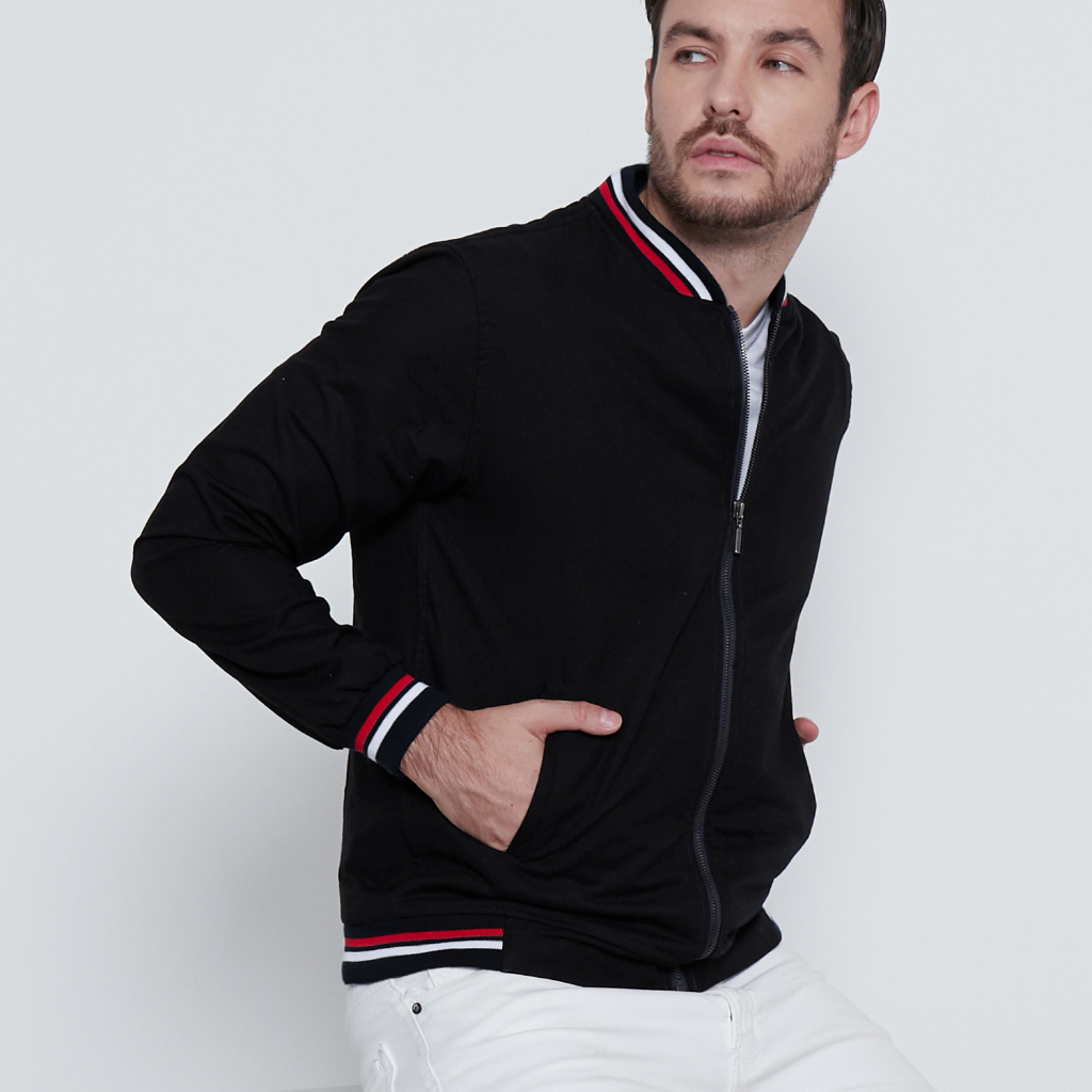 M231 Jaket Pria Bomber Oxford Panjang Hitam 1768A