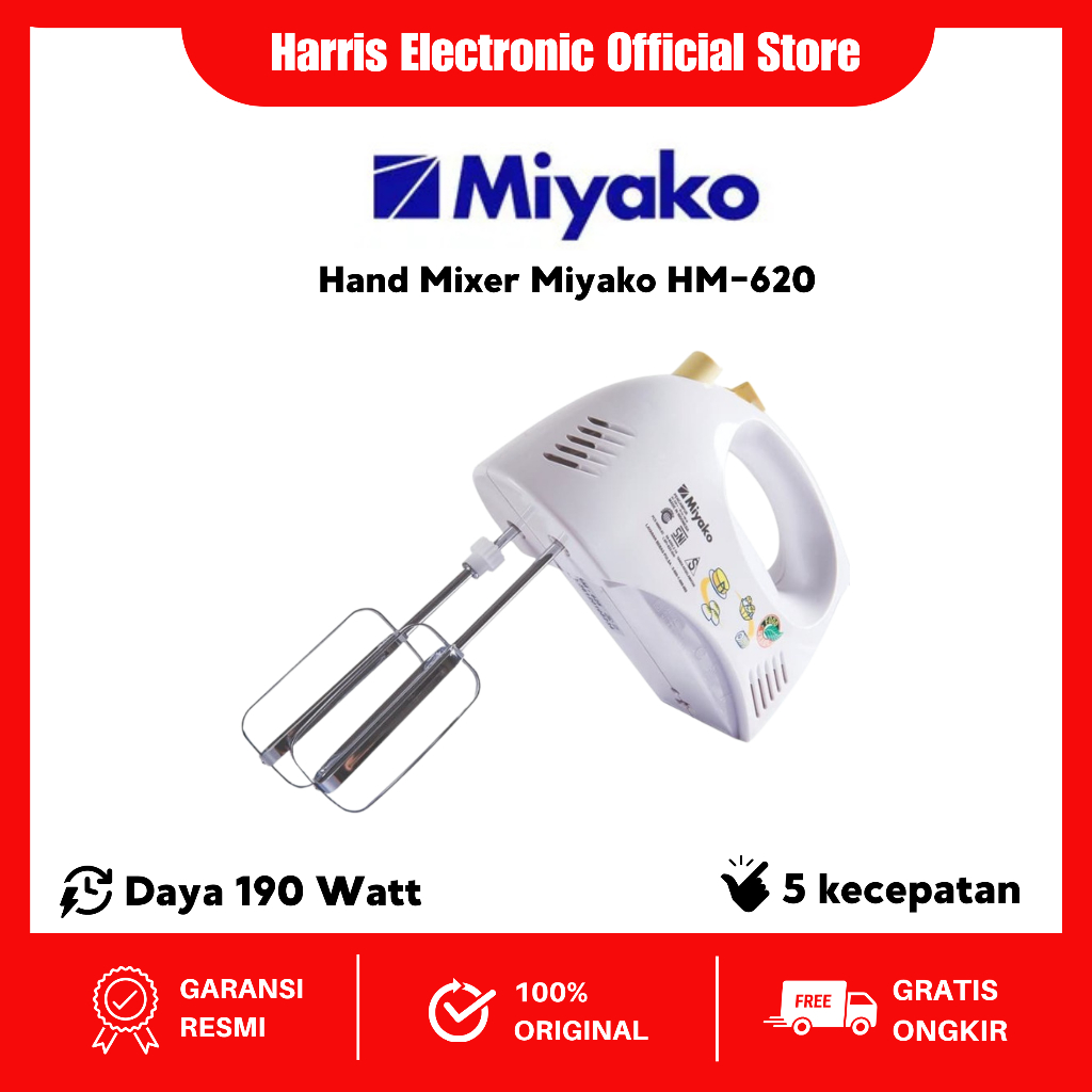[Mall] Miyako HM620 Hand Mixer 190 Watt Mixer Tangan HM-620