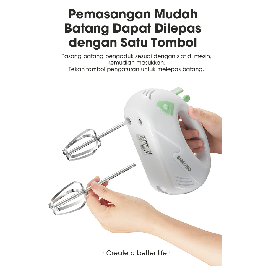[Mall] SAMONO Hand Mixer 7 Tingkat Kecepatan Pengaduk Adonan Kue Garansi Resmi 1 Tahun SW-HM120