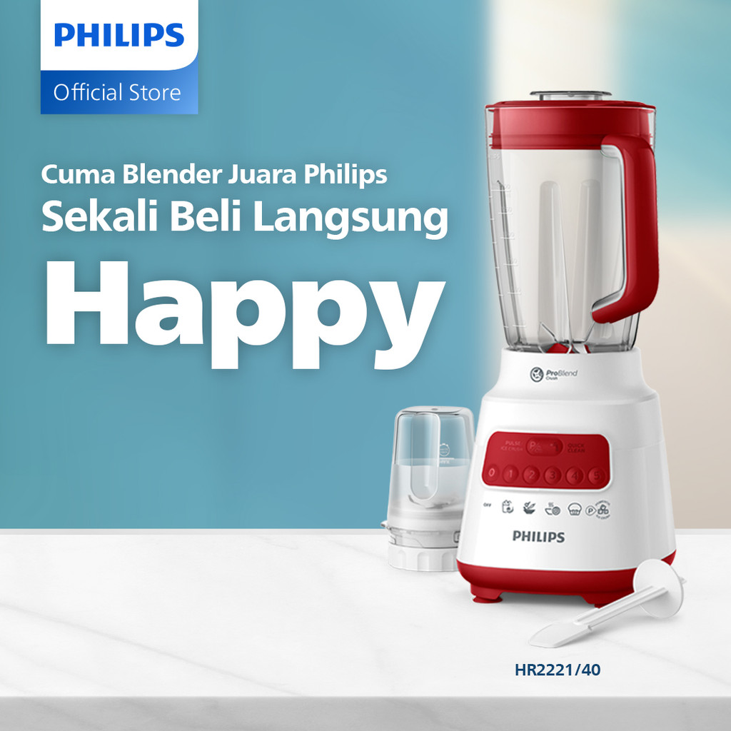 [Mall] Blender Philips Plastik 2 liter - 5000 Series HR2221/40 - Blender jus - Blender bumbu philips - Dry Mill - Blender Serbaguna - Blender Terbaik -Merah