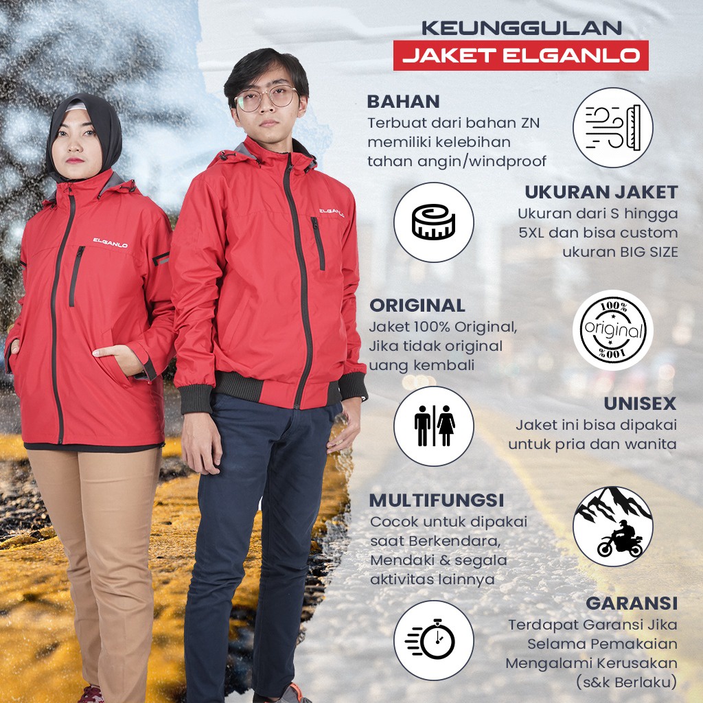 ELGANLO Jaket Harian Jacket Bomber Jaket Riding Jaket Touring Motor Bahan Zn 100 PERSEN Windproof Jacket