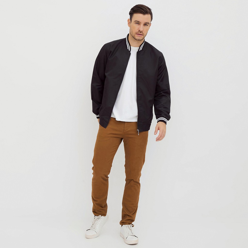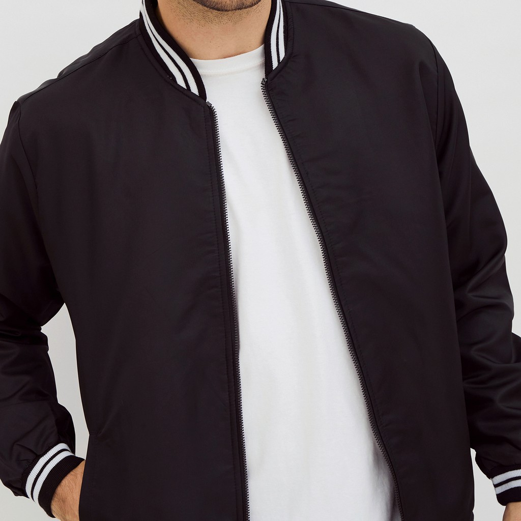 M231 Jaket Pria Bomber Taslan Panjang Hitam 2078B