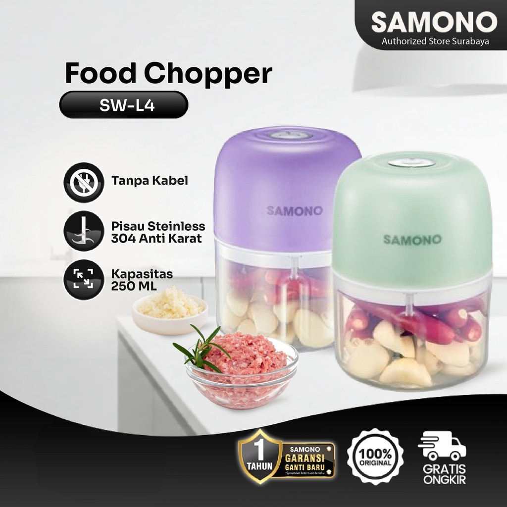[Mall] SAMONO Buy 1 Get 1 Chopper 300ml Free Chopper Portable 250ml Penghalus Daging dan Bumbu Blender Portable MPASI Food Grade Garansi 1 Tahun