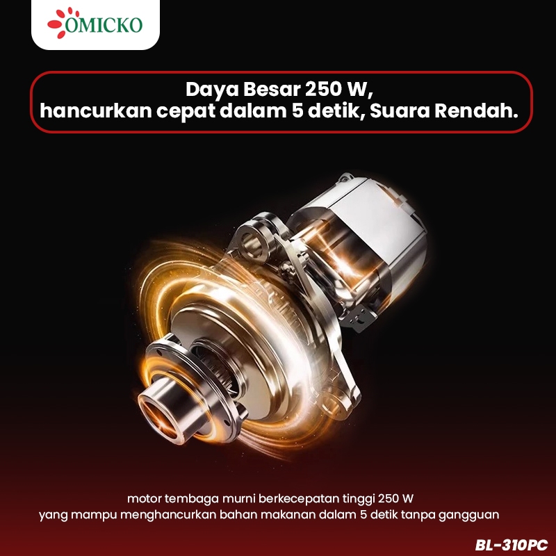 [Mall] OMICKO BL-310 PC Blender Pelumat 2in1 Pisau Stainless Steel 6 Mata 1000ml 250W Kapasitas Besar Penghancur Es & Chopper Mini Bahan Plastik Food Grade Garansi 1 Tahun - Wadah