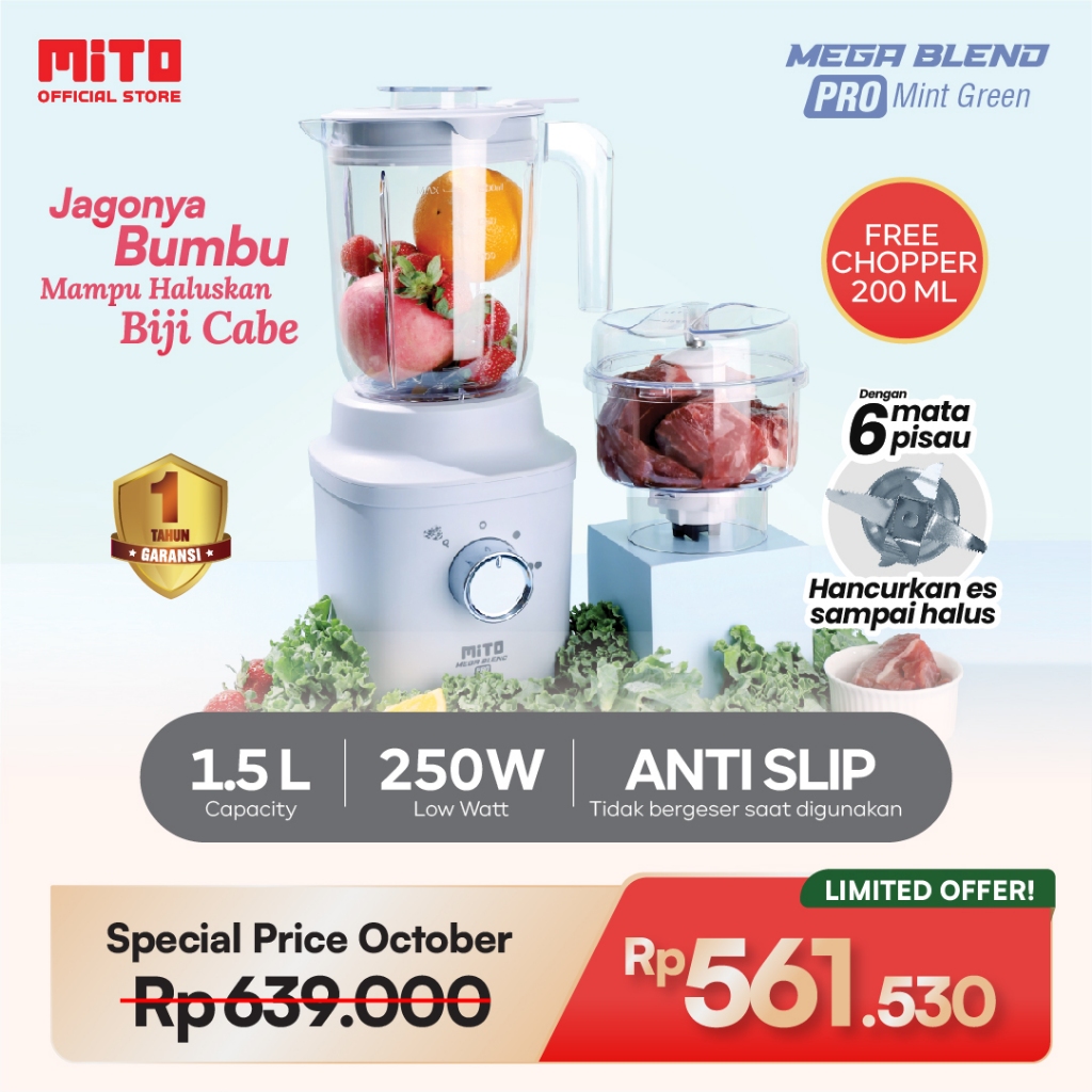 [Mall] MITO MEGA BLEND PRO BL300 - 1,5L Jar 2 Tingkat Kecepatan + Pulse + 6 Mata Pisau dengan Ice Crusher