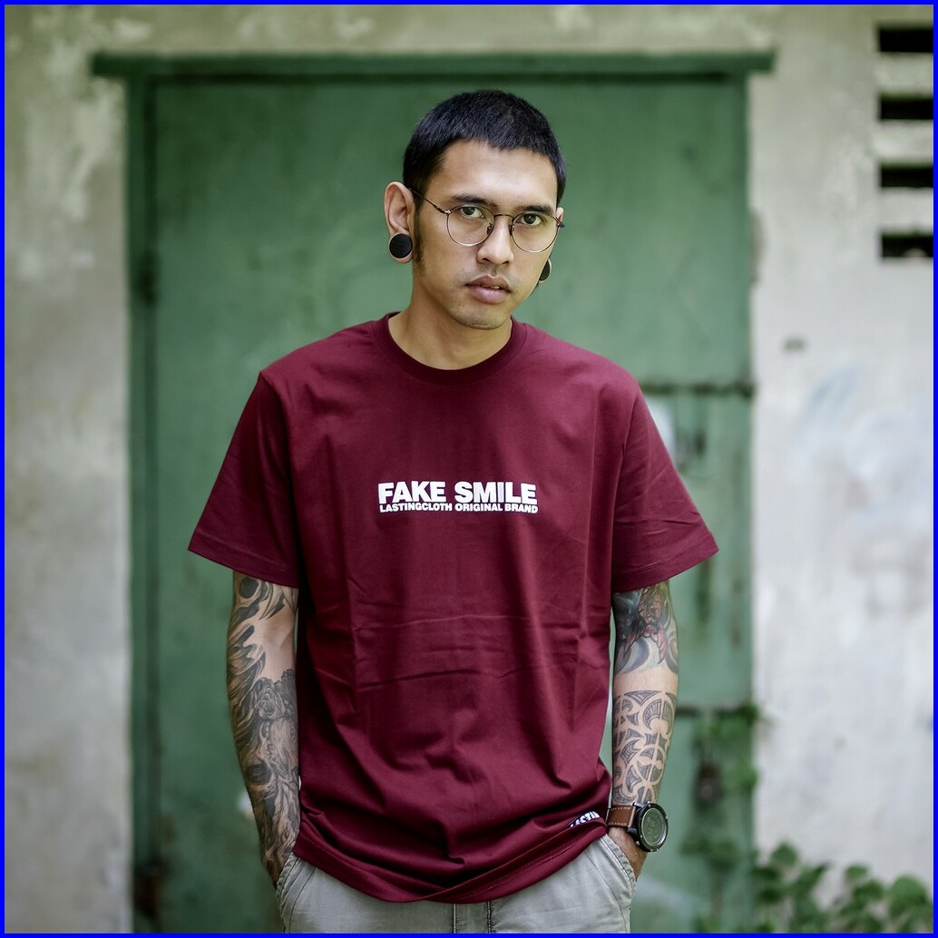 Lasting T-shirt Fake Smile Maroon Kaos Distro Baju Lasting Cloth