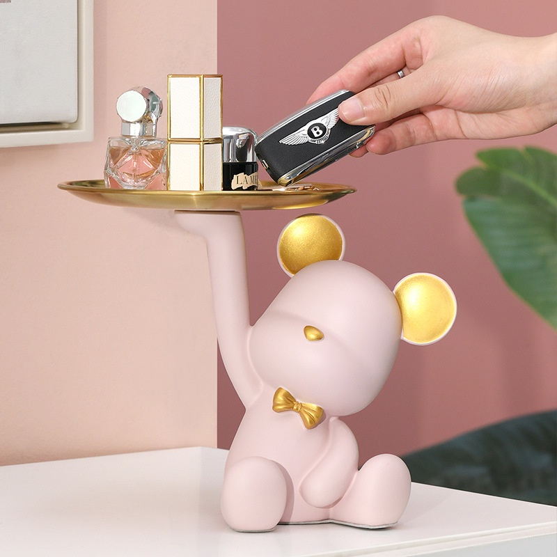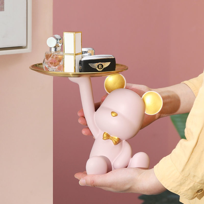 Eyre Meja Nordic Bear Nampan Penyimpanan Kreatif Patung-Patung Ornamen Ruang Tamu Teras Meja Rumah Resin Dekorasi Kunci