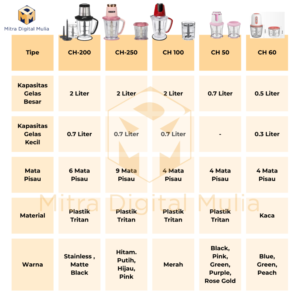 CH 50 Purple 0.6 L, CH 200 Black 2L, CH 60 Blue Sky, CH 50 Rosegold 0.6 L, CH 60 Peach Sunset, CH 50 Pink 0.6 L, CH 100 2 L/4 Pisau, CH 50 Green 0.6 L, CH 50 Black 0.6 L, CH 60 Green