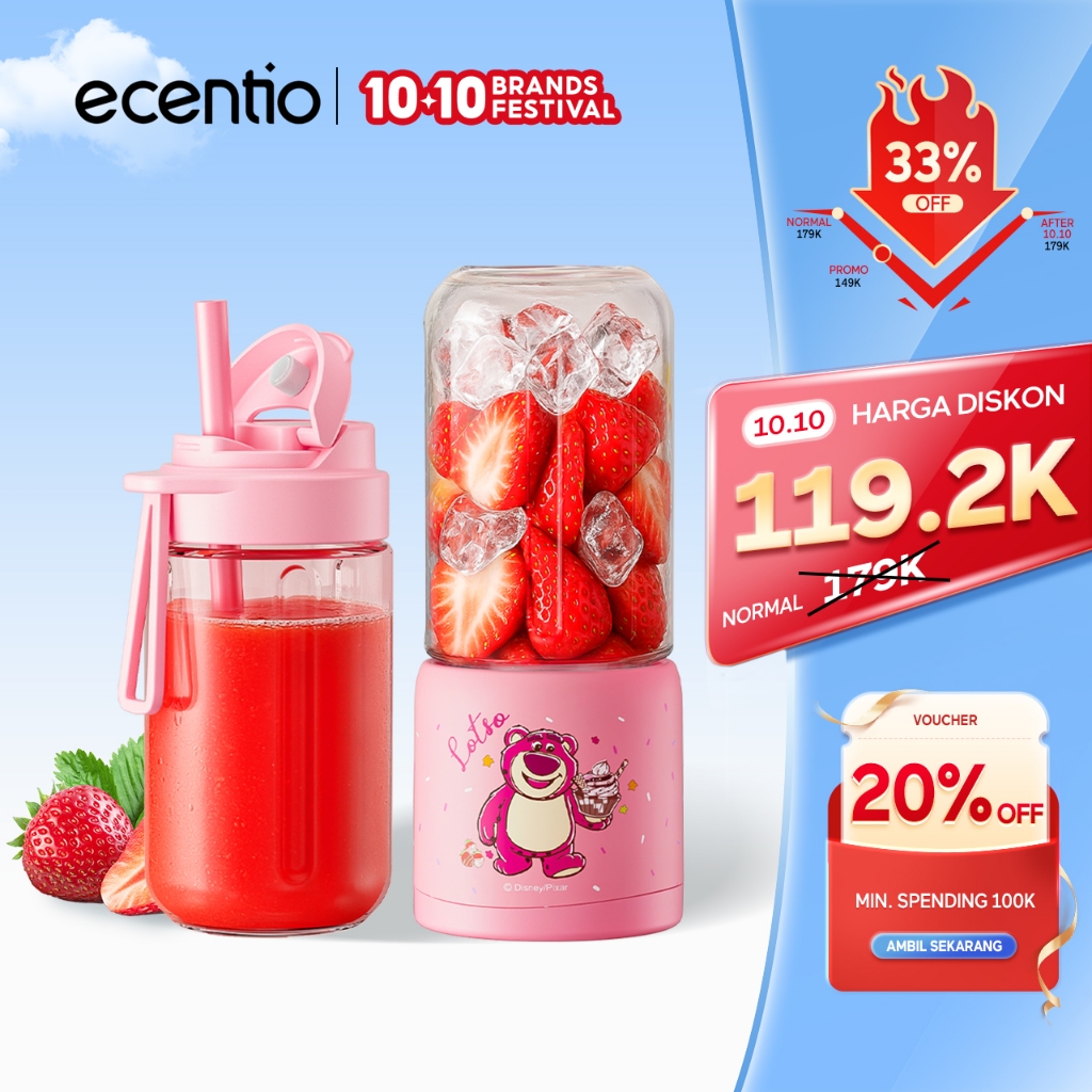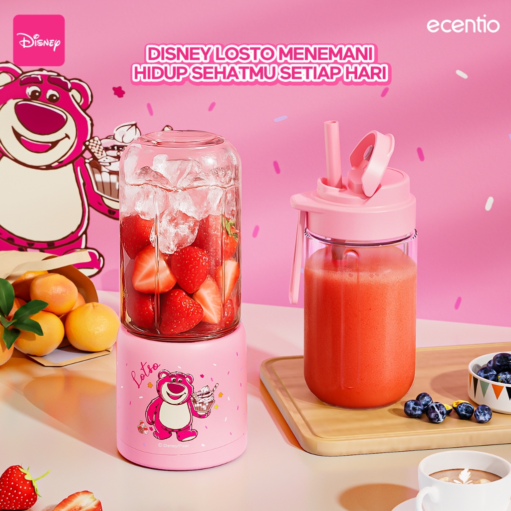 [Mall] ecentio&Disney Losto Mini Juicer Blender Portable MPASI Portable 2 Kaca Gelas Food Grade Tahan Pecah 380ml+380ml 10 Pisau Stainless SNI Garansi 1 Tahun For Smoothie Diet & Minuman Sehat