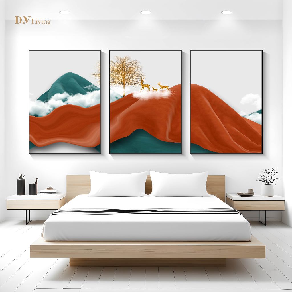 Dvliving Hiasan Dinding Ruang Tamu Minimalis 80X57Cm&40X57Cm Mountain Red Fuji Include Frame- Lukisan Dinding Aesthetic