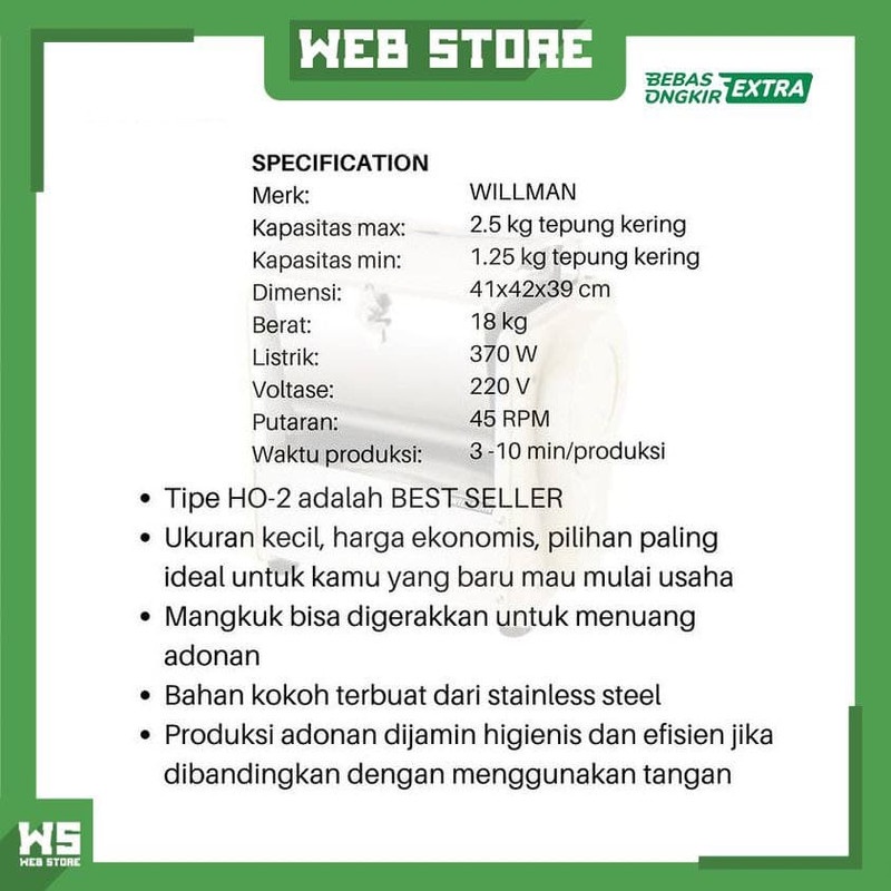 [Mall] Mesin Pengaduk Adonan Mie Pempek Cireng Dimsum Mesin Pencampur Adonan Dough Mixer WILLMAN HO-2 Stainless