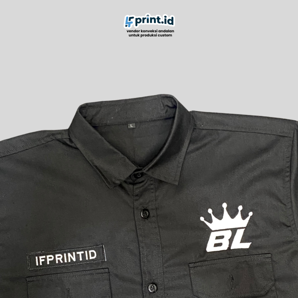 Custom Bordir Workshirt Kemeja Kerja Premium Logo dan Tulisan Satuan Lusinan