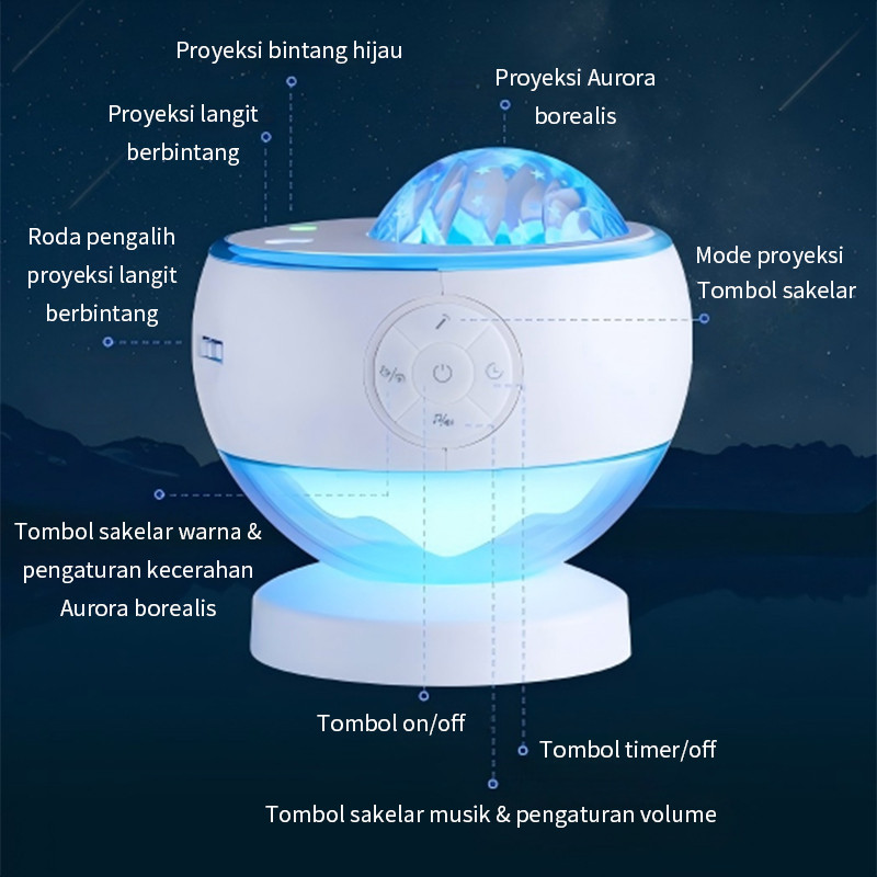 Lampu Tidur Led Proyektor Kelinci Langit Bulan Bintang Star Moon Galaxy Kado Natal Christmas Gift / Kualitas Bagus CHO