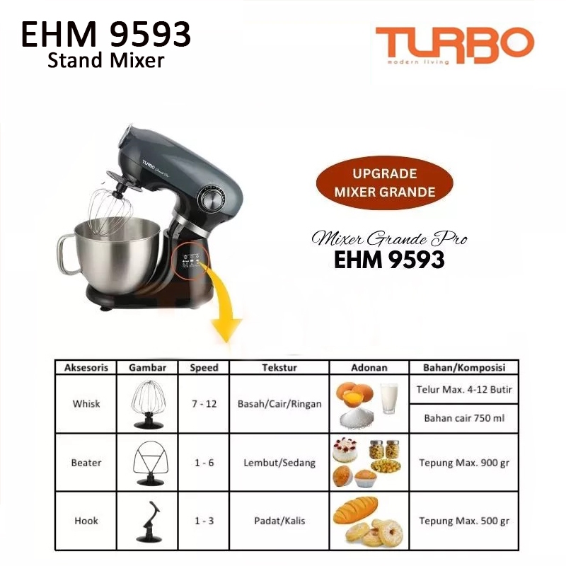 [Mall] Turbo Grande Stand Mixer with Bowl / Pengaduk Adonan EHM9595 / EHM9593 Kapasitas 5 L