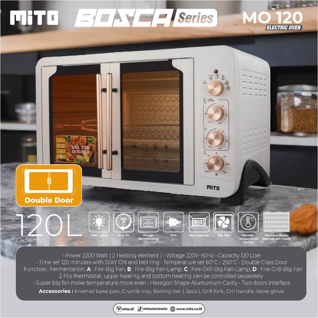 [Mall] MITO Oven Listrik Bosca Series MO120 double door 120L | Pemanggang makanan kapasitas besar - White